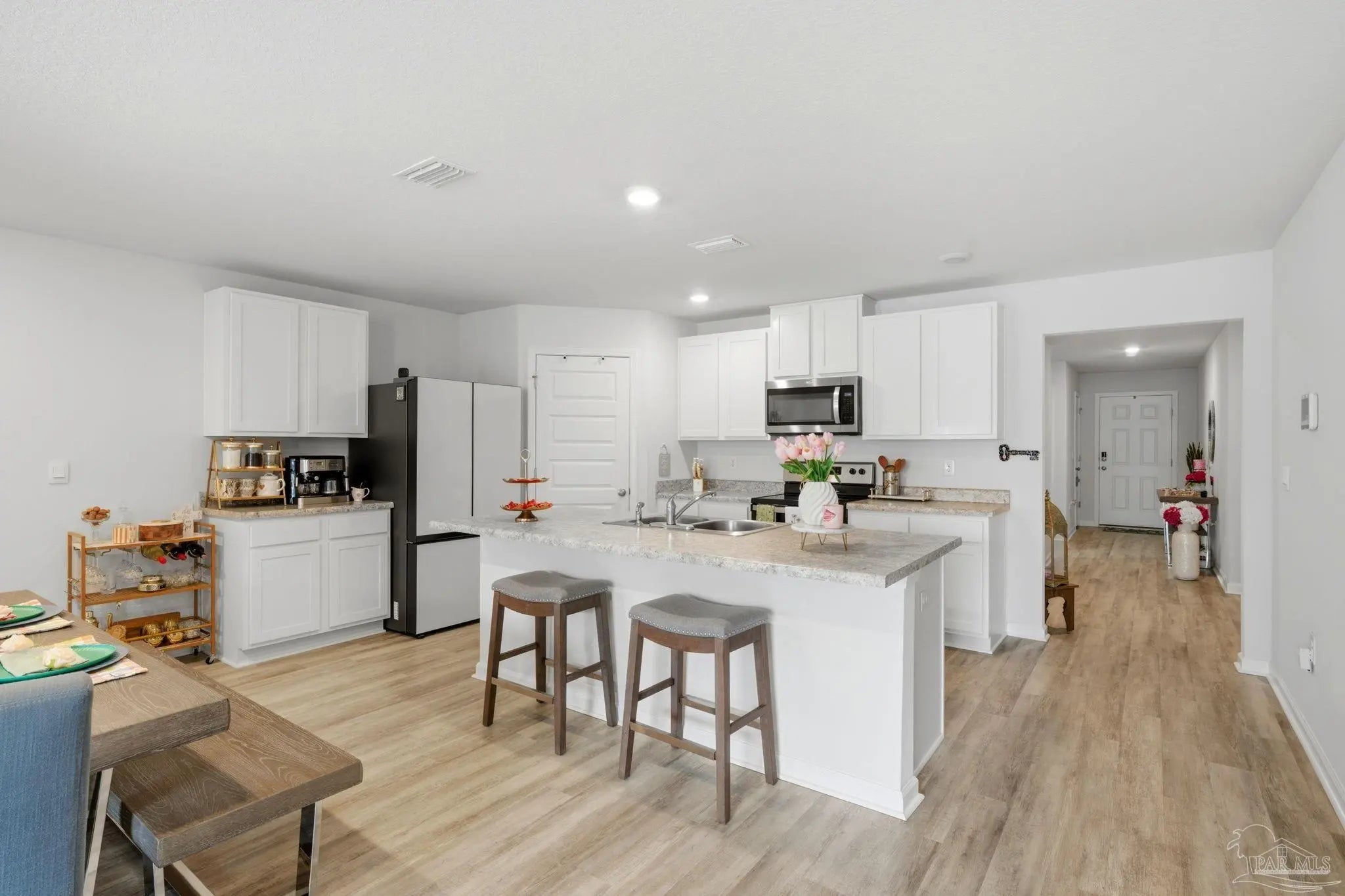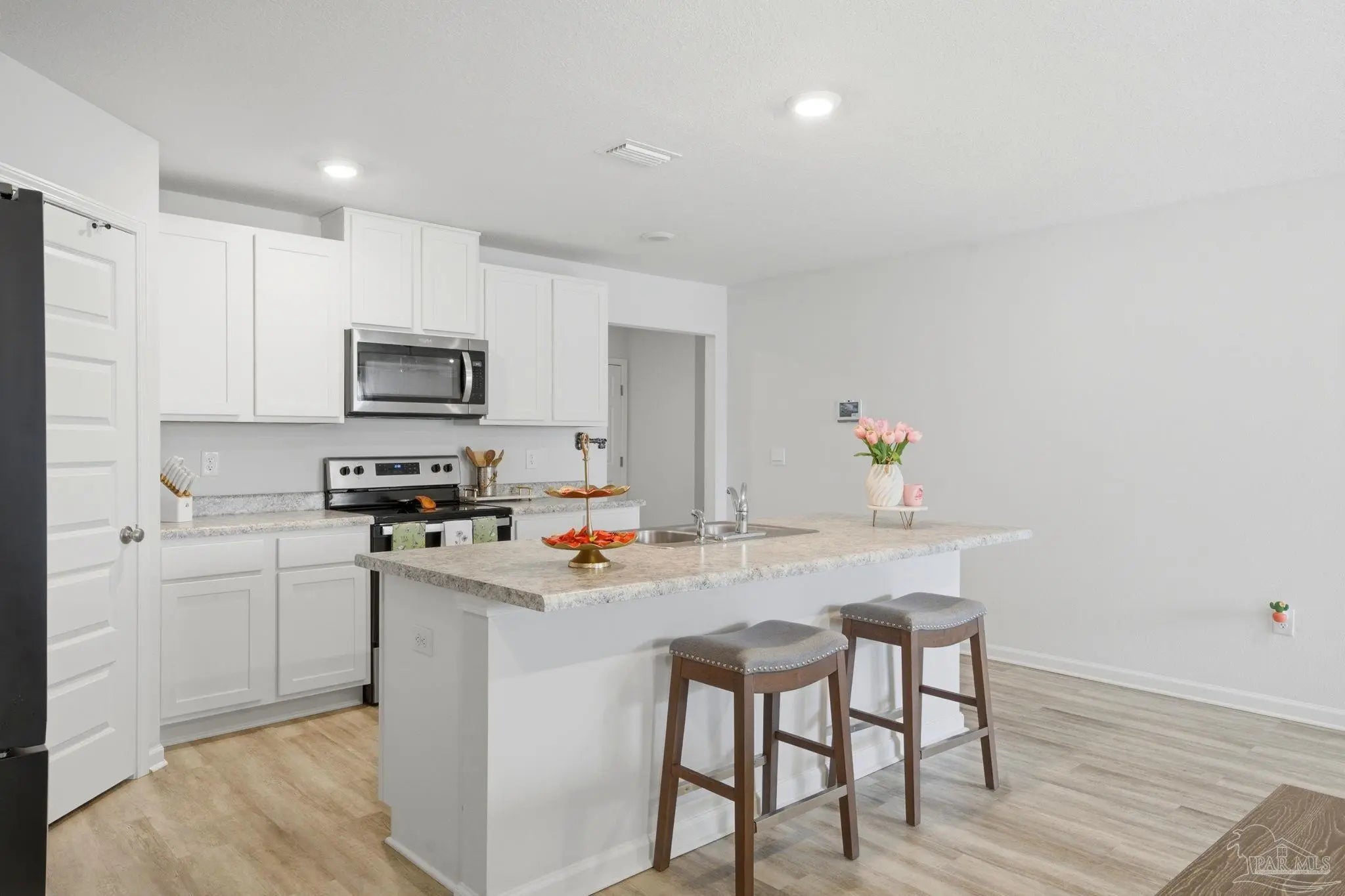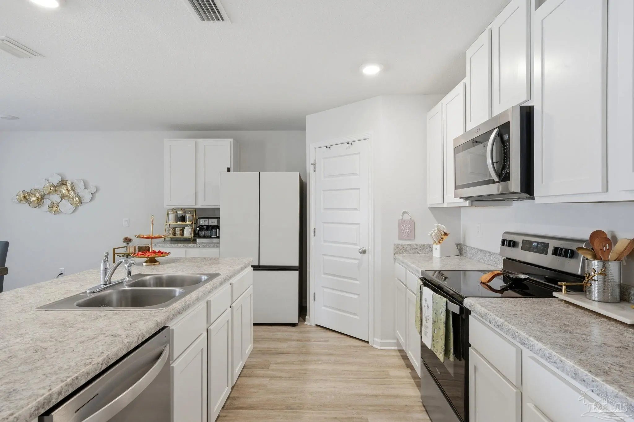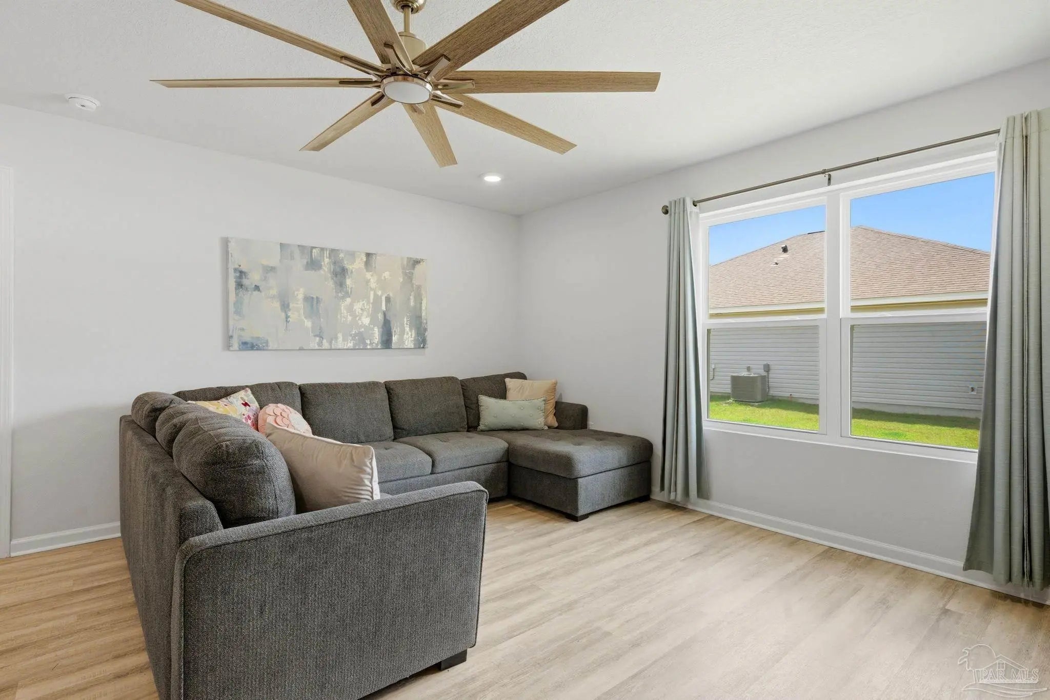 Welcome to this beautifully maintained 4-bedroom, 2-bath home in Paisleigh Place offering the perfect blend of modern style and everyday comfort. Step inside to a bright, open-concept layout that seamlessly connects the kitchen, dining, and living areas ideal for entertaining or relaxing at home. The kitchen features stainless steel appliances, a large island, ample cabinetry, and a pantry for extra storage. The split-bedroom design provides privacy, with three spacious secondary bedrooms at the front and a private primary suite tucked away in the back, complete with a walk-in closet and en-suite bath. Located in the West Pensacola community near Nine Mile Rd, close to shopping, dining, and everyday essentials.