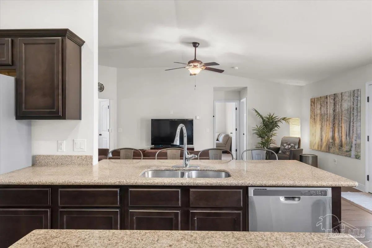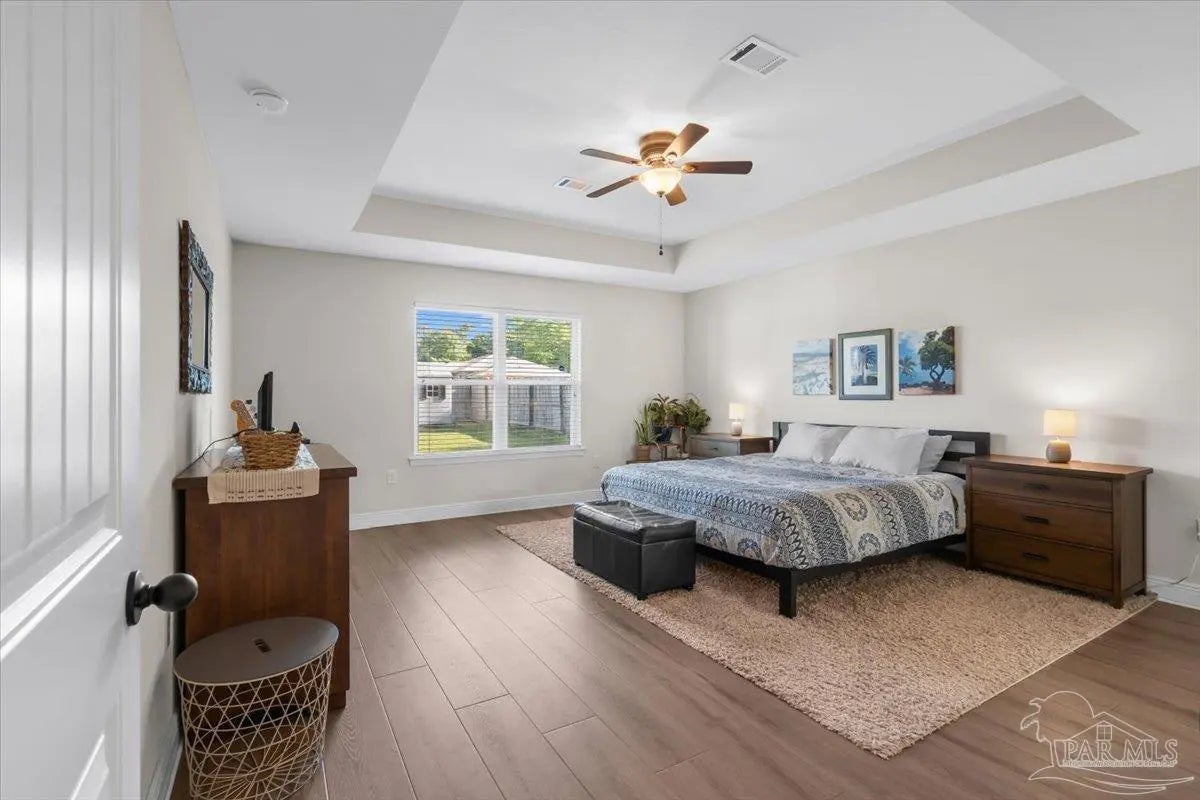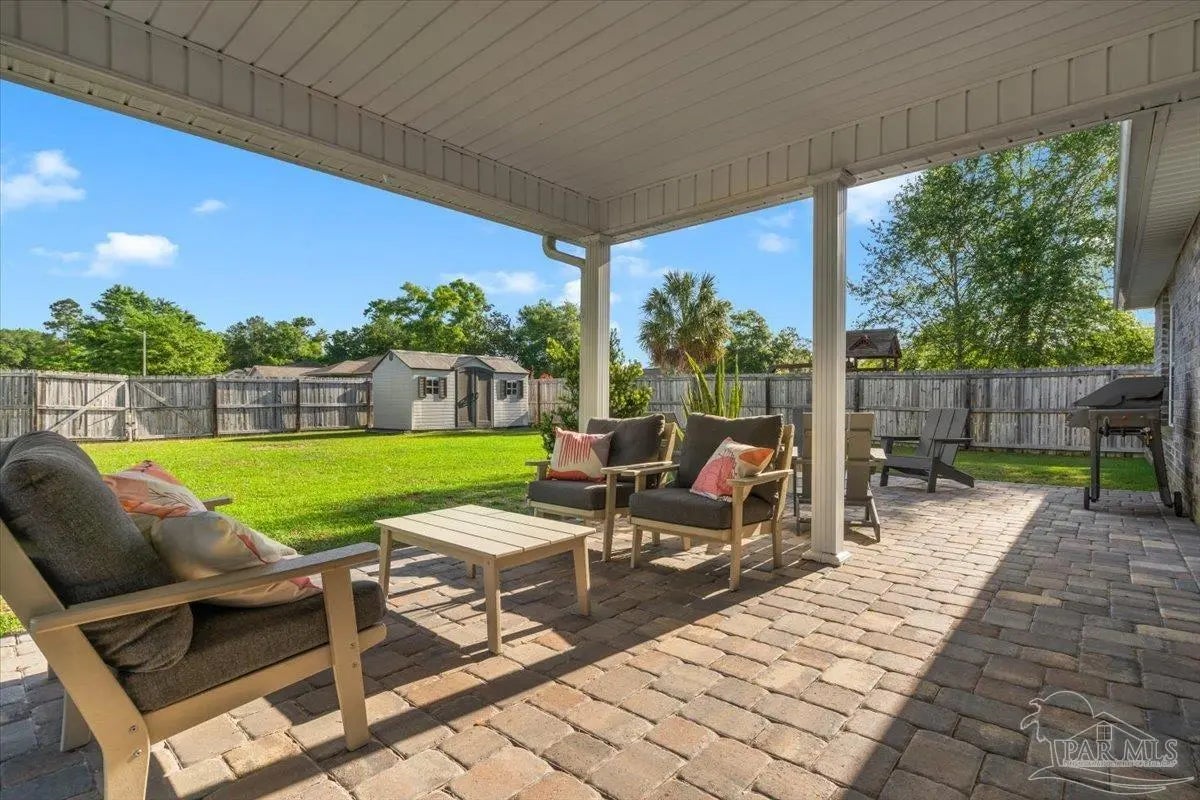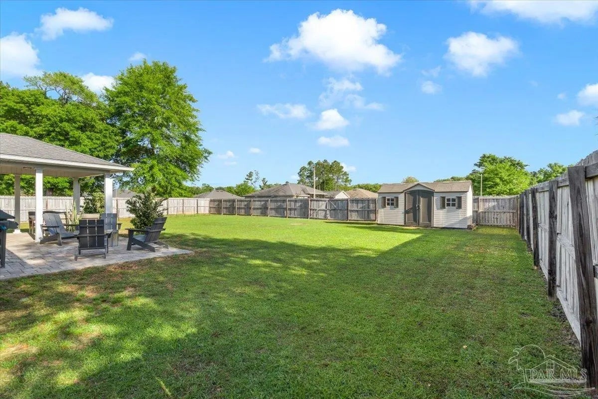 Spacious and beautifully updated, this five bedroom, three full bath home offers a functional single-level floor plan with room to live, work, and entertain. The large kitchen features ample counter space, a generous pantry, and opens seamlessly to the main living and dining areas—ideal for everyday living and hosting. A dedicated formal dining room provides the perfect setting for hosting gatherings, holidays, and everyday meals with ease. The main bedroom is generously sized and includes an en-suite bath with a custom tile shower for a relaxing feel. Recent updates provide peace of mind, including brand new carpet and luxury vinyl plank flooring (2023), a fully repainted interior (2023), and a new HVAC system (2024). Step outside to enjoy the custom expanded paved patio—perfect for entertaining—along with a fully fenced backyard offering privacy and space to play or relax. A backyard shed provides additional storage for tools and outdoor equipment. Located in a welcoming neighborhood with sidewalks and community food truck events, this home is conveniently close to local schools, Benny Russell Park, and offers an easy commute to nearby amenities. A rare opportunity to own a move-in ready home with space, updates, and community charm!