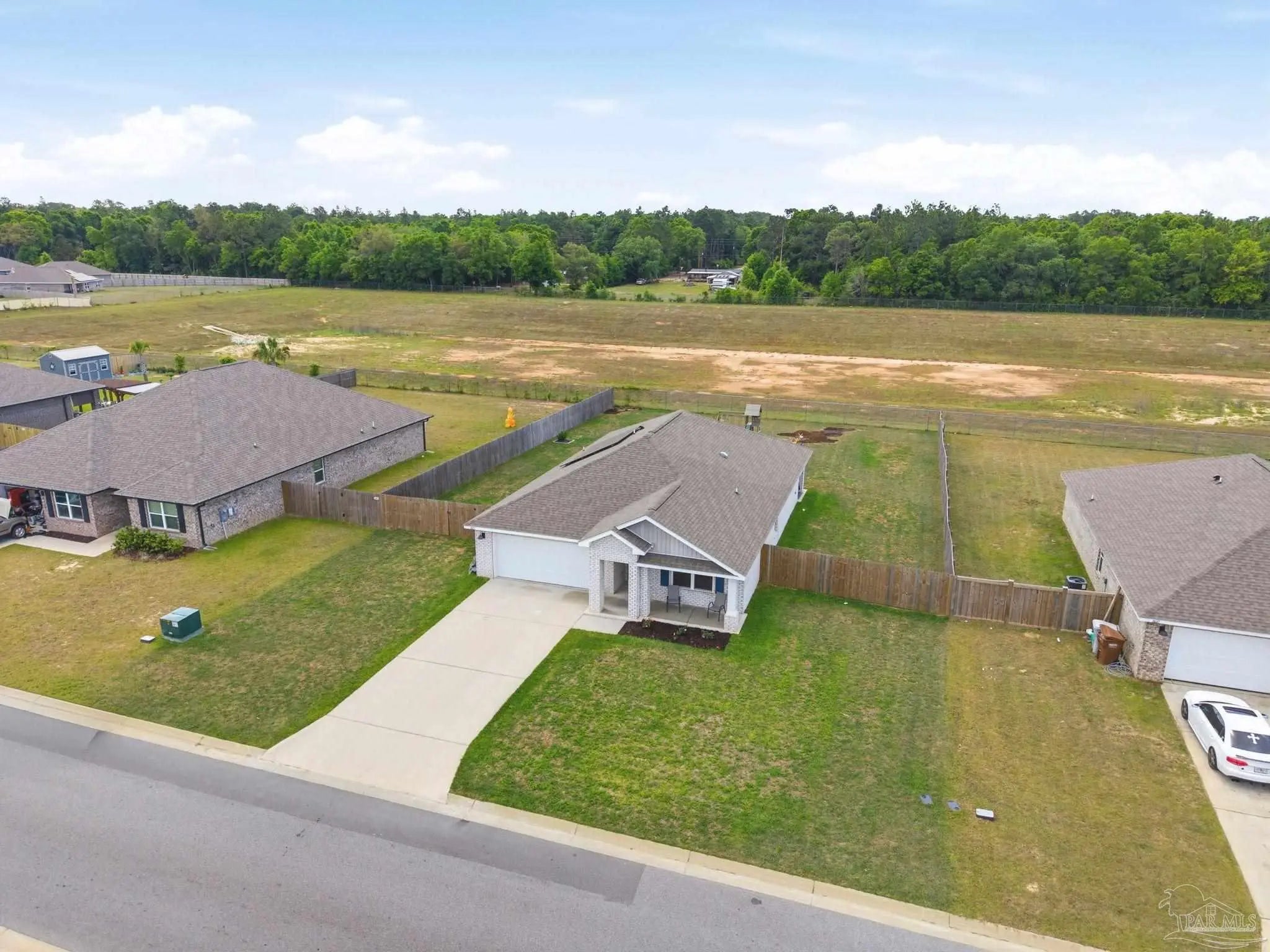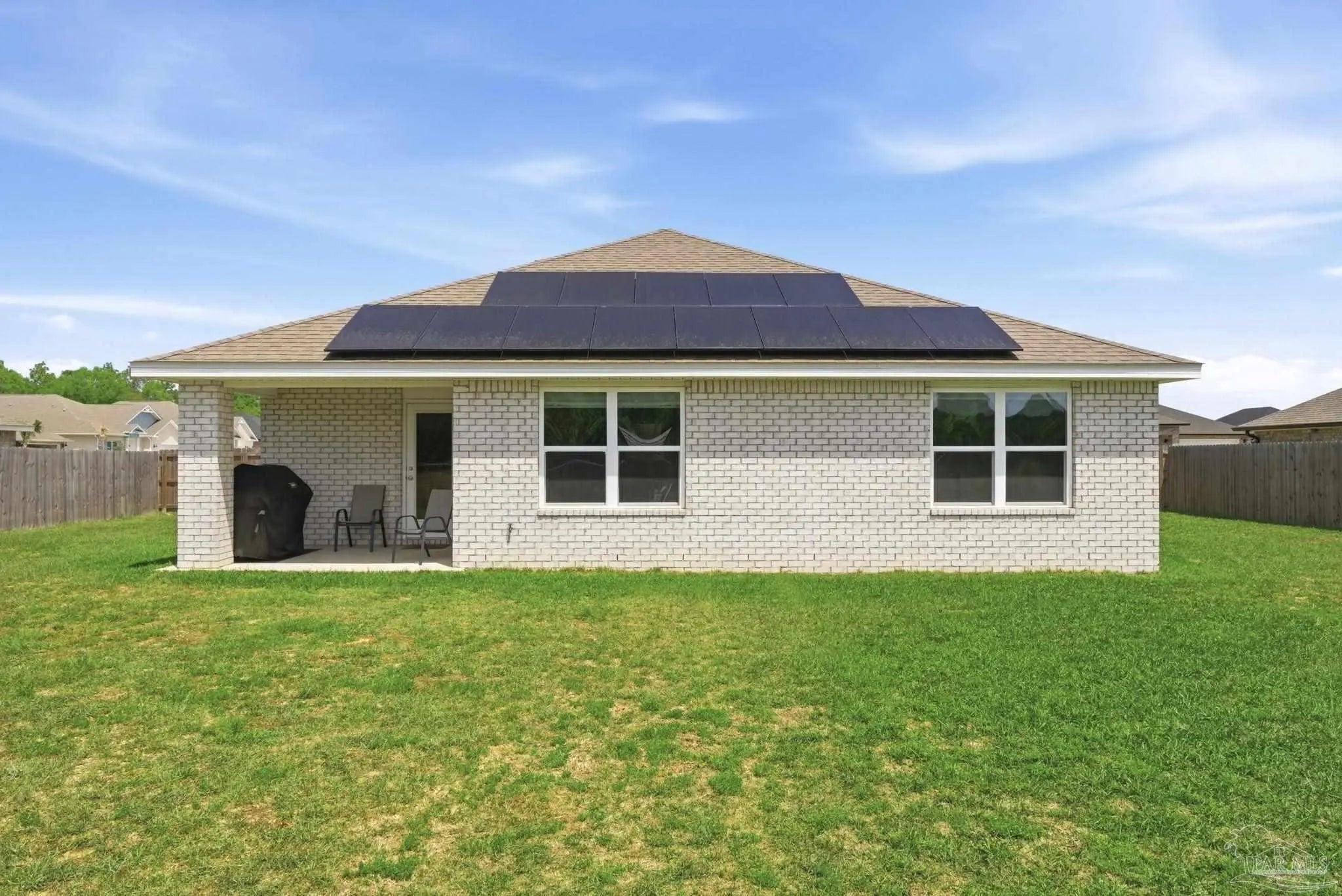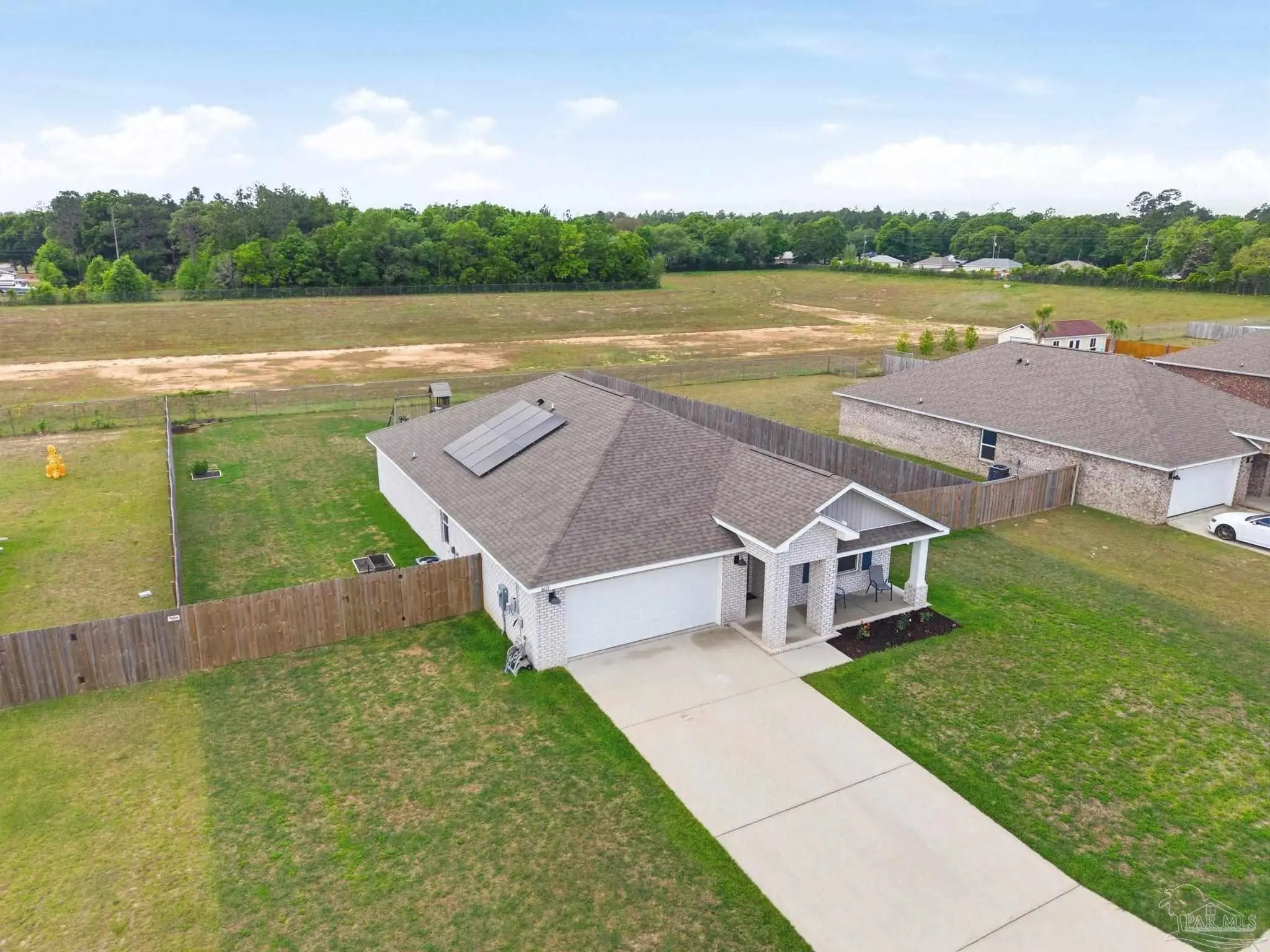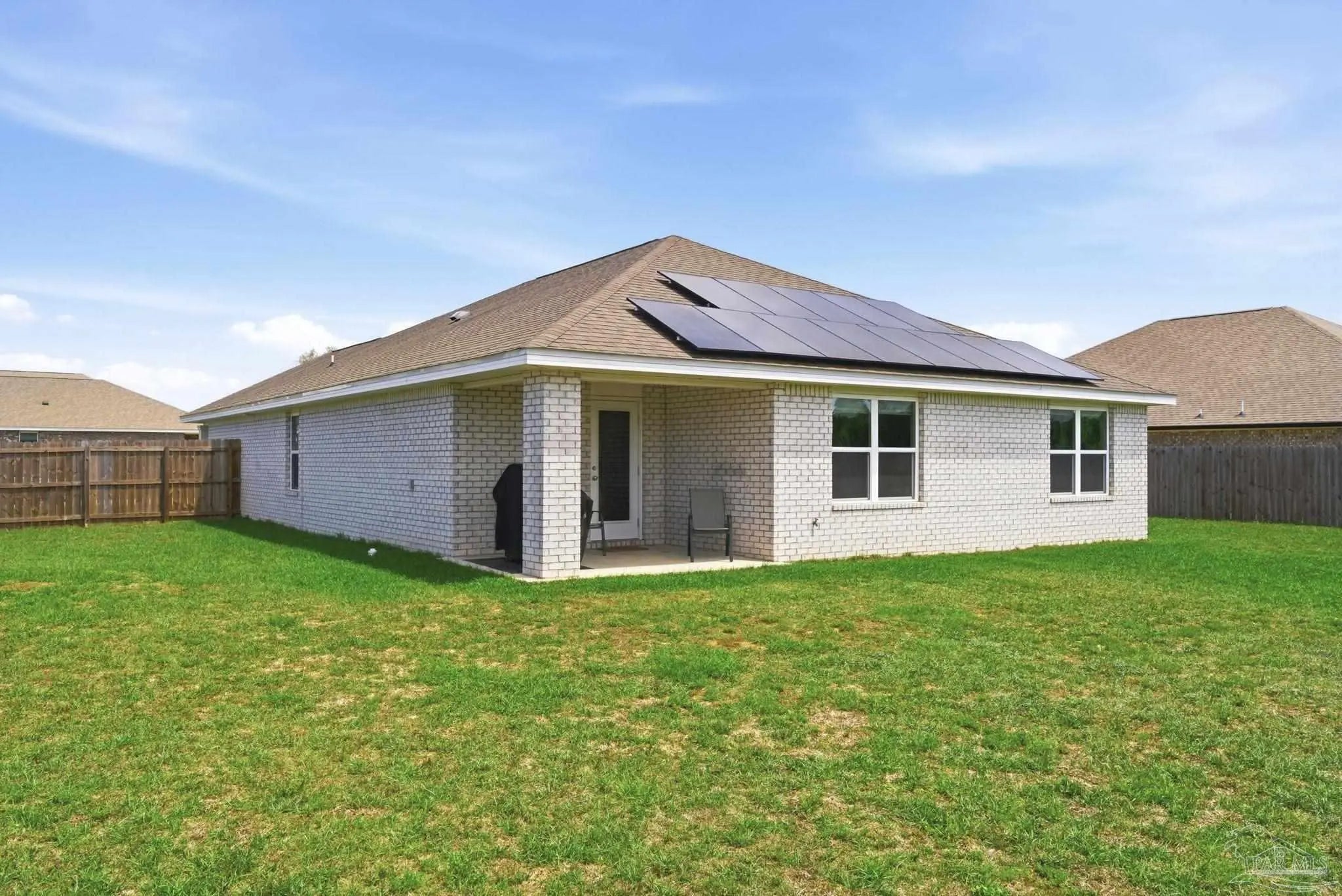 Move-in ready Cali floor plan located in Plantation Woods! Built in 2023, this 4-bedroom, 2-bath home offers 1,830 sq ft of open living space on a spacious 0.29-acre lot. The popular split floor plan features a large living area that flows seamlessly into the kitchen and dining space, complete with a center island, ample cabinetry, and modern finishes—perfect for entertaining or everyday living. The private primary suite includes a walk-in closet, double vanity, and walk-in shower, while three additional bedrooms provide flexibility for family, guests, or a home office. Enjoy outdoor living with a covered back patio overlooking the generous backyard. Additional features include a Smart Home Technology package with keyless entry and energy-efficient solar panels, offering added convenience and potential savings on utility costs. Located in the desirable Plantation Woods community with easy access to local shopping, dining, and schoo