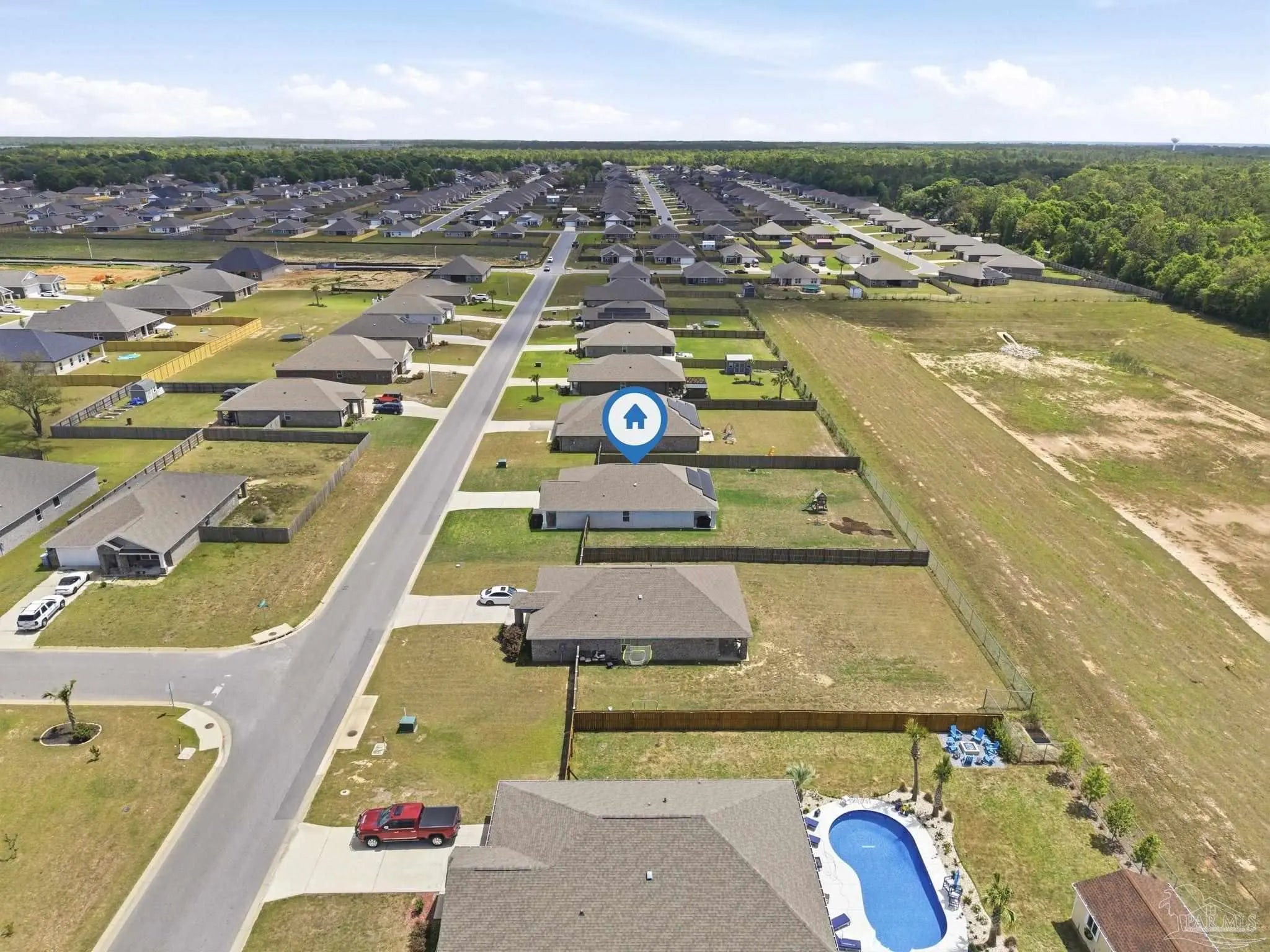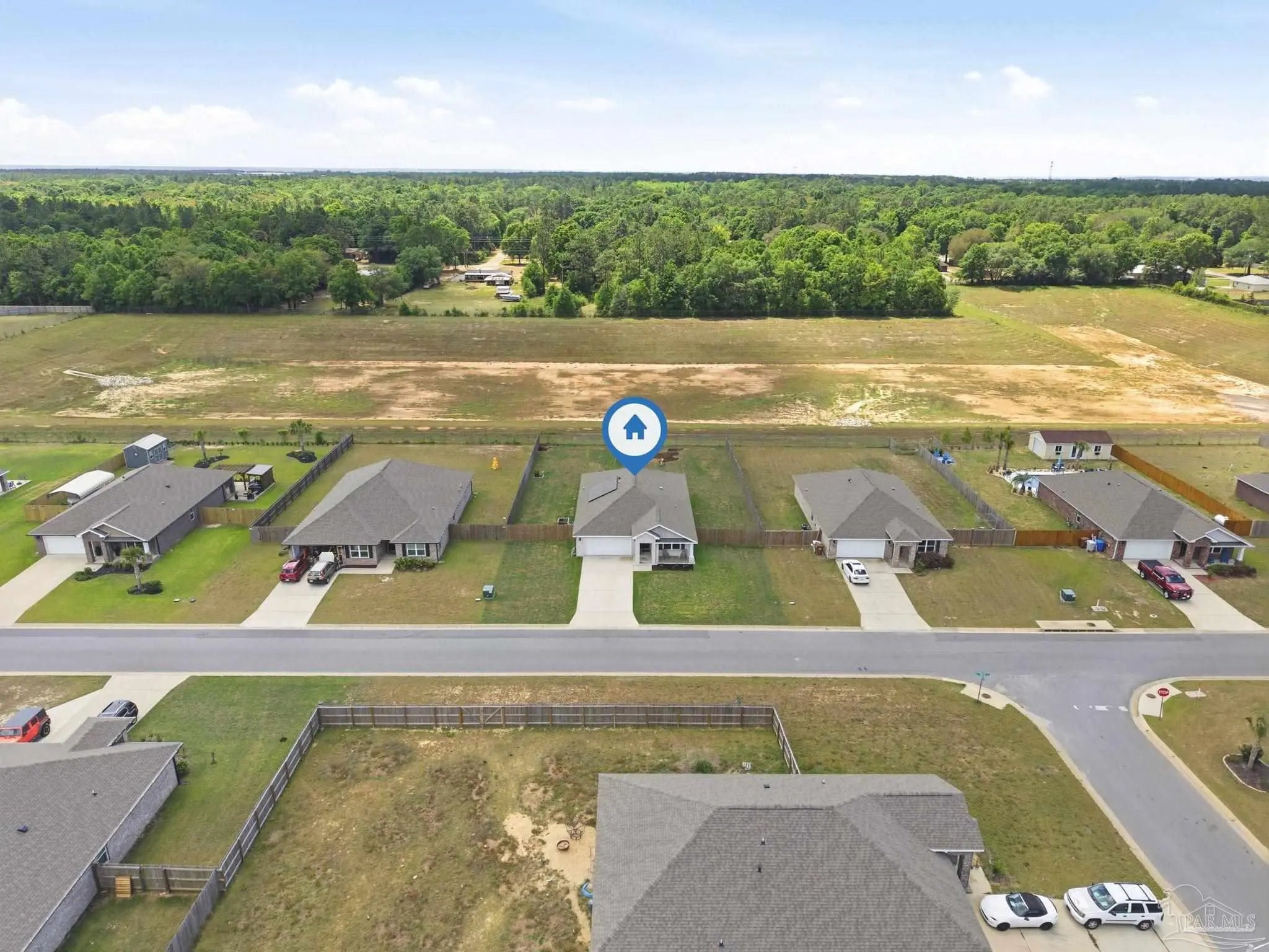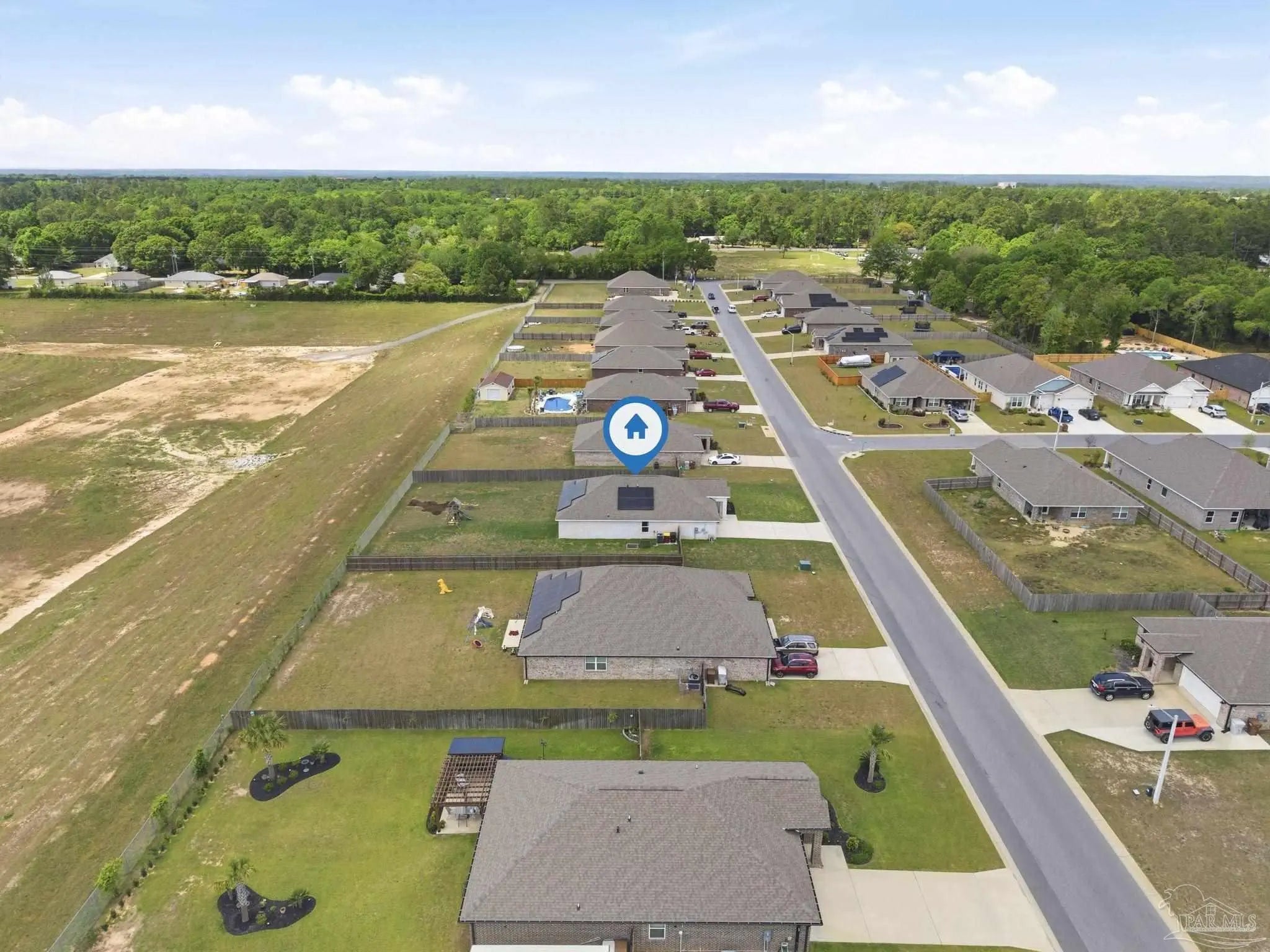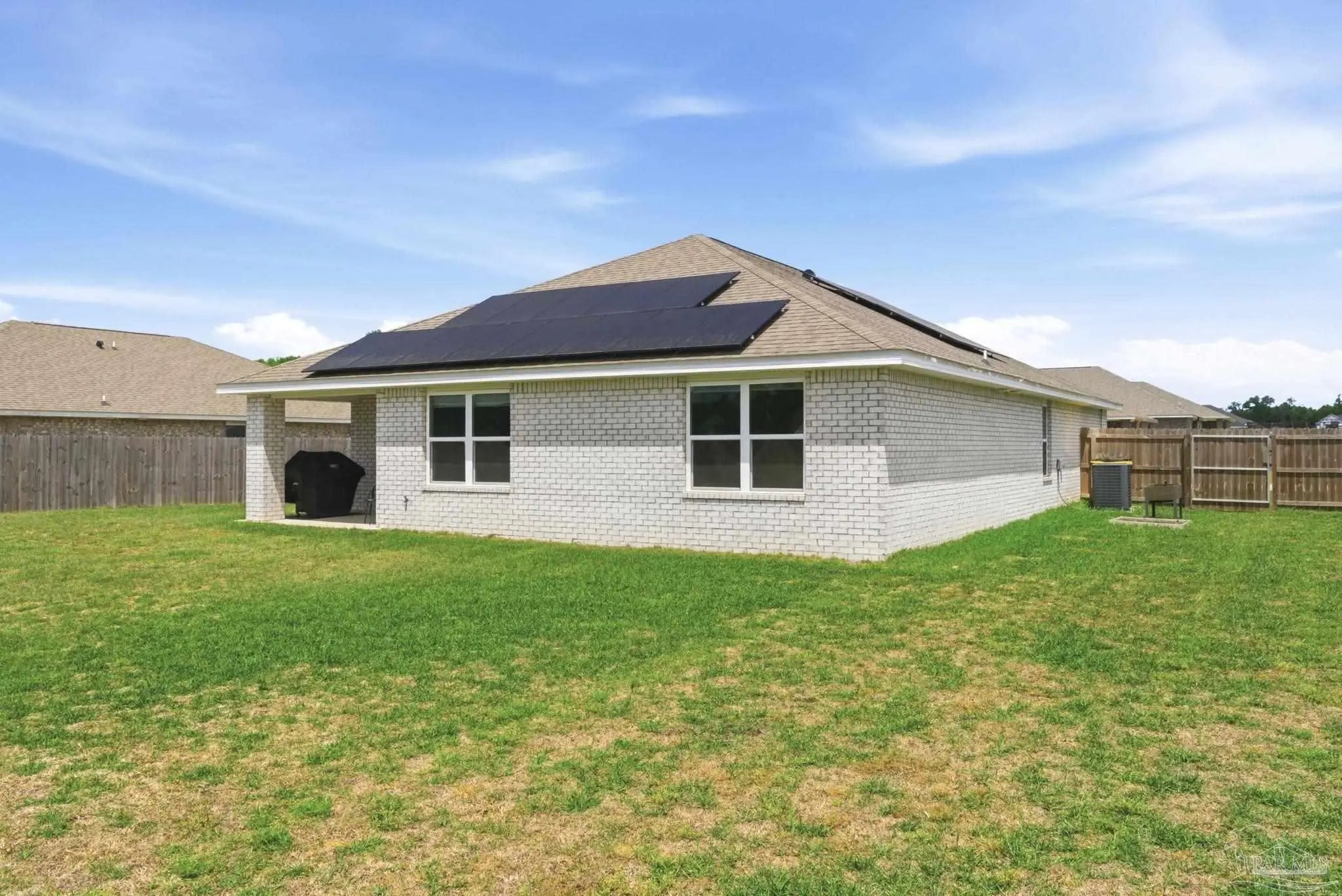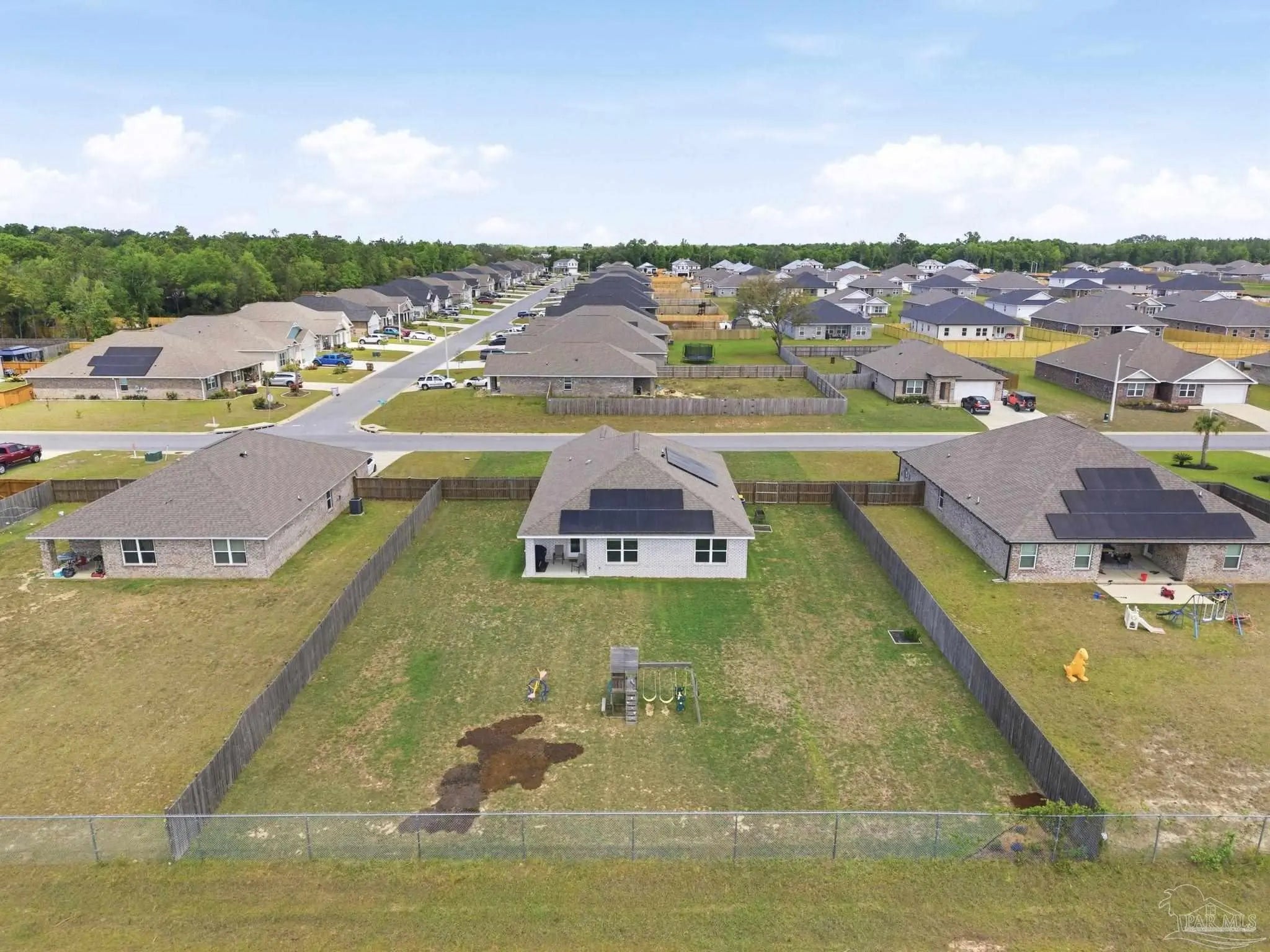 Move-in ready Cali floor plan located in Plantation Woods! Built in 2023, this 4-bedroom, 2-bath home offers 1,830 sq ft of open living space on a spacious 0.29-acre lot. The popular split floor plan features a large living area that flows seamlessly into the kitchen and dining space, complete with a center island, ample cabinetry, and modern finishes—perfect for entertaining or everyday living. The private primary suite includes a walk-in closet, double vanity, and walk-in shower, while three additional bedrooms provide flexibility for family, guests, or a home office. Enjoy outdoor living with a covered back patio overlooking the generous backyard. Additional features include a Smart Home Technology package with keyless entry and energy-efficient solar panels, offering added convenience and potential savings on utility costs. Located in the desirable Plantation Woods community with easy access to local shopping, dining, and schoo