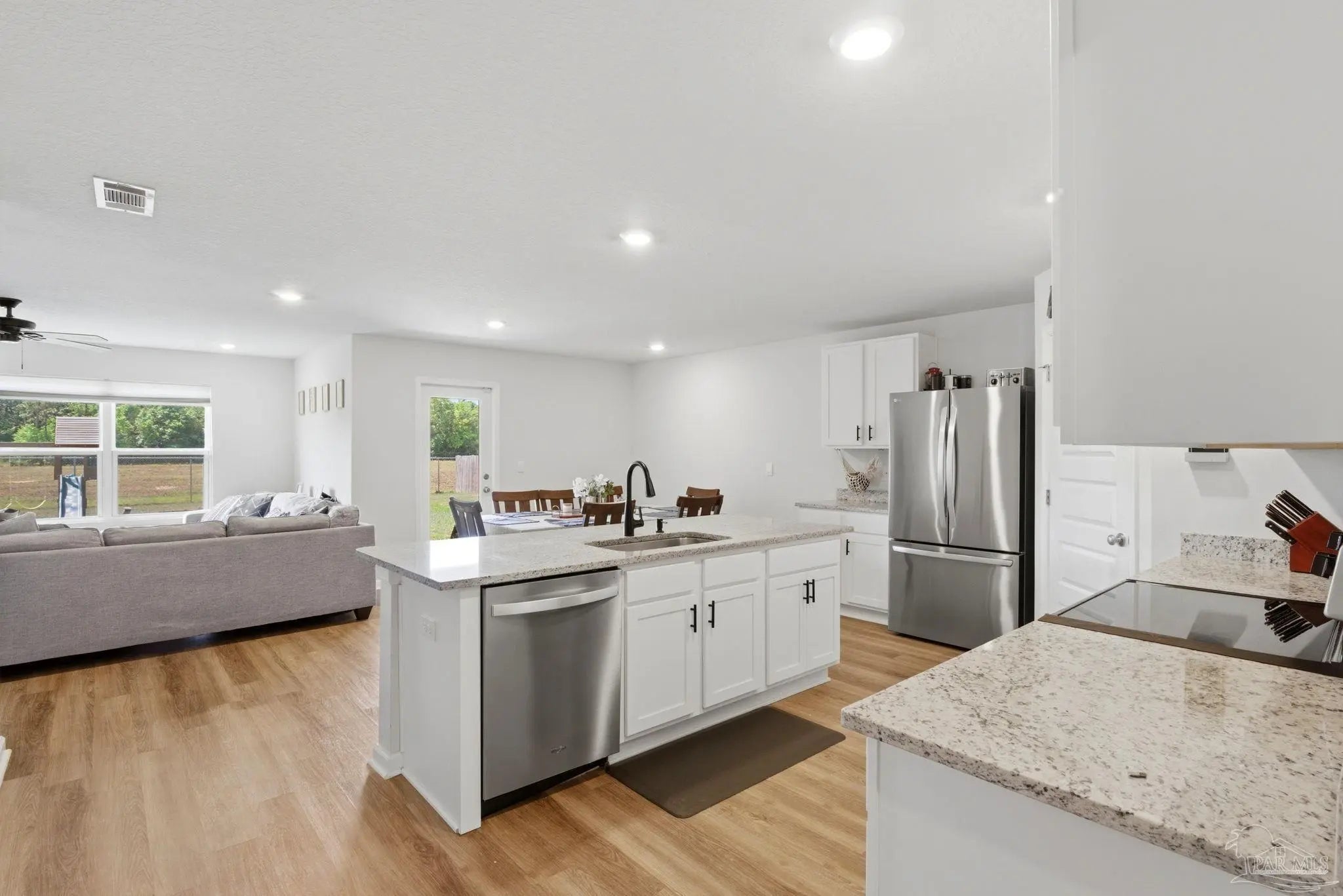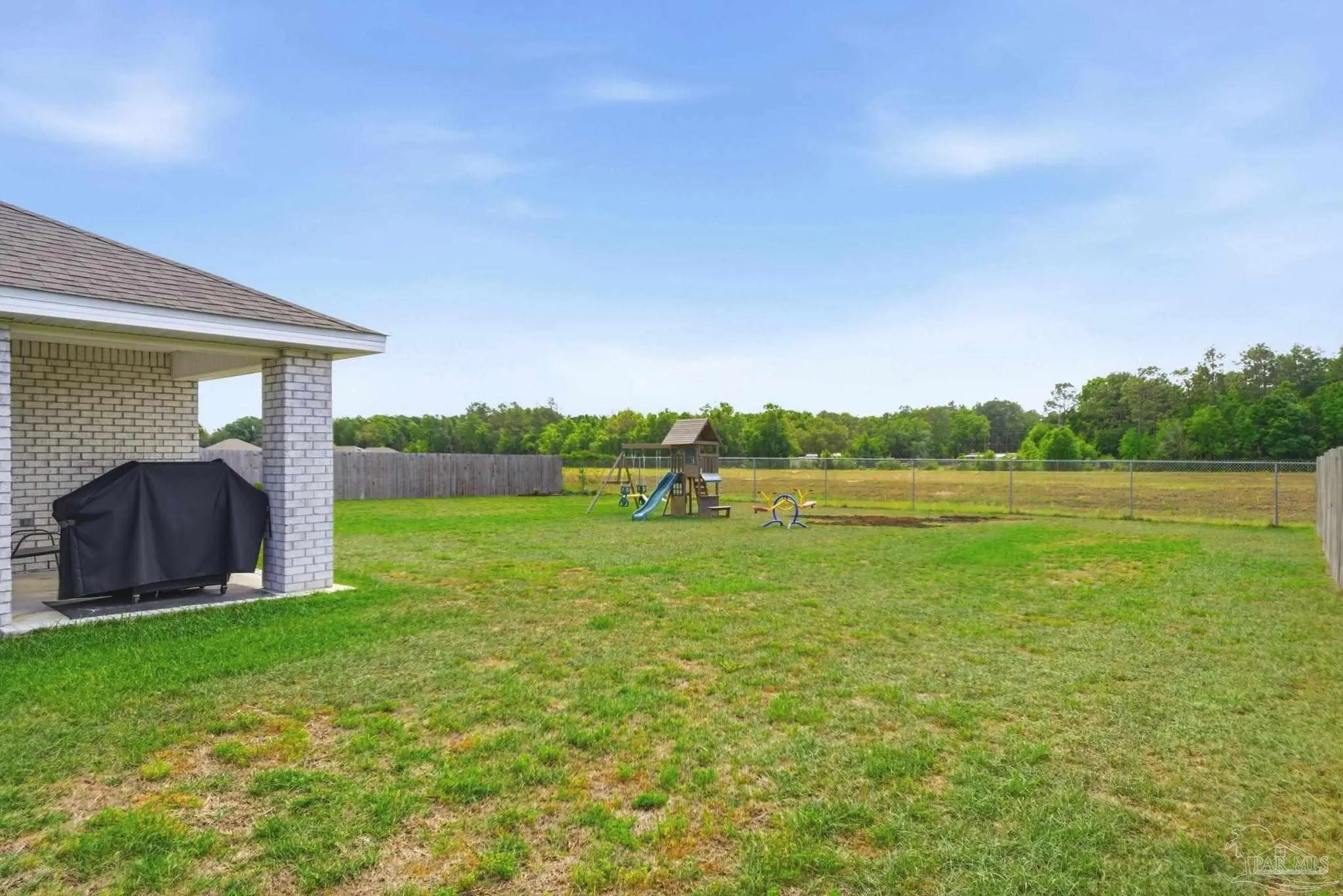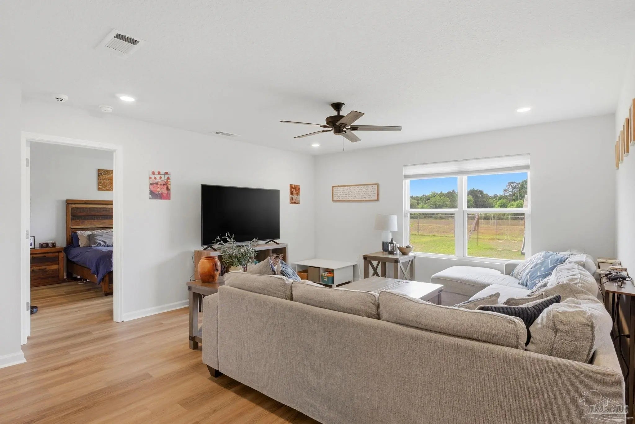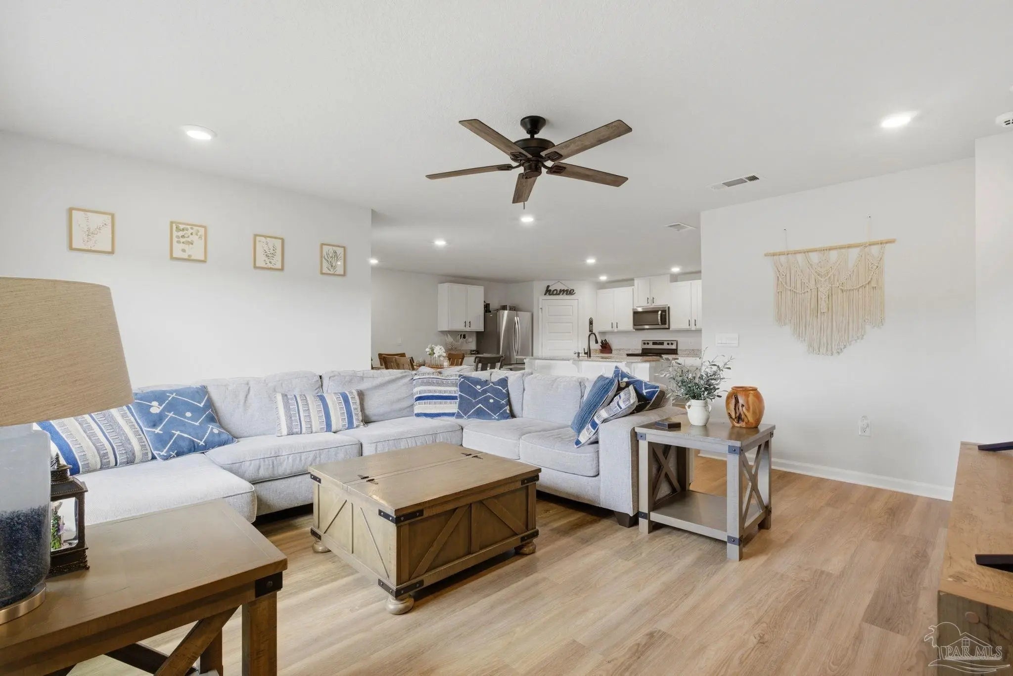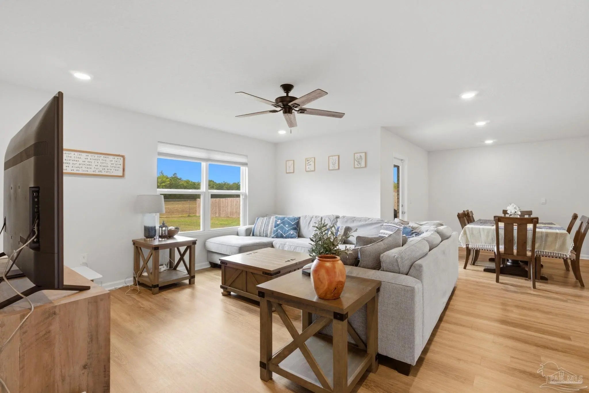 Move-in ready Cali floor plan located in Plantation Woods! Built in 2023, this 4-bedroom, 2-bath home offers 1,830 sq ft of open living space on a spacious 0.29-acre lot. The popular split floor plan features a large living area that flows seamlessly into the kitchen and dining space, complete with a center island, ample cabinetry, and modern finishes—perfect for entertaining or everyday living. The private primary suite includes a walk-in closet, double vanity, and walk-in shower, while three additional bedrooms provide flexibility for family, guests, or a home office. Enjoy outdoor living with a covered back patio overlooking the generous backyard. Additional features include a Smart Home Technology package with keyless entry and energy-efficient solar panels, offering added convenience and potential savings on utility costs. Located in the desirable Plantation Woods community with easy access to local shopping, dining, and schoo