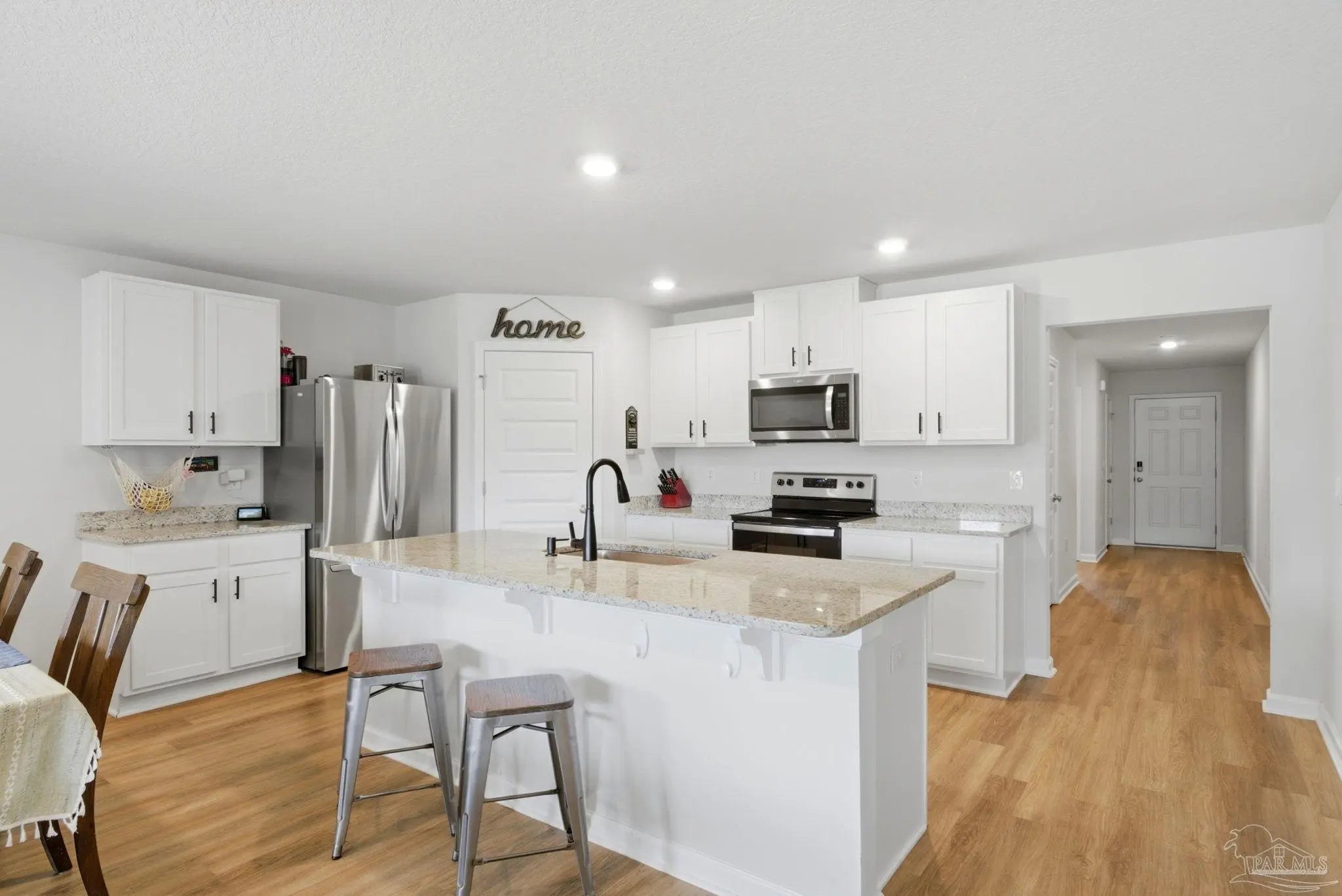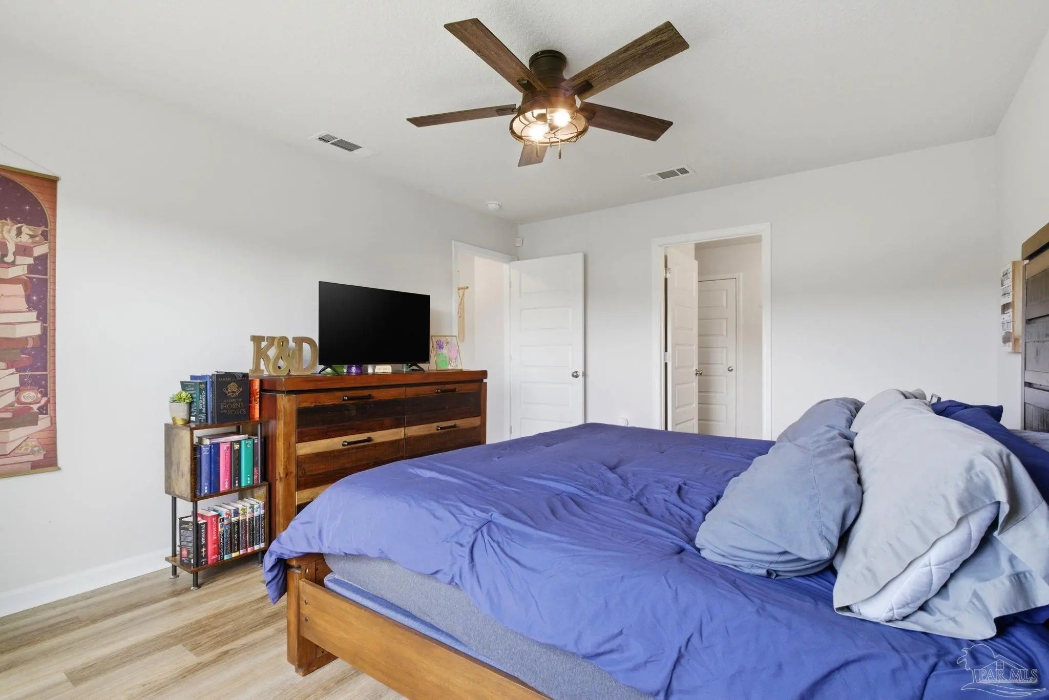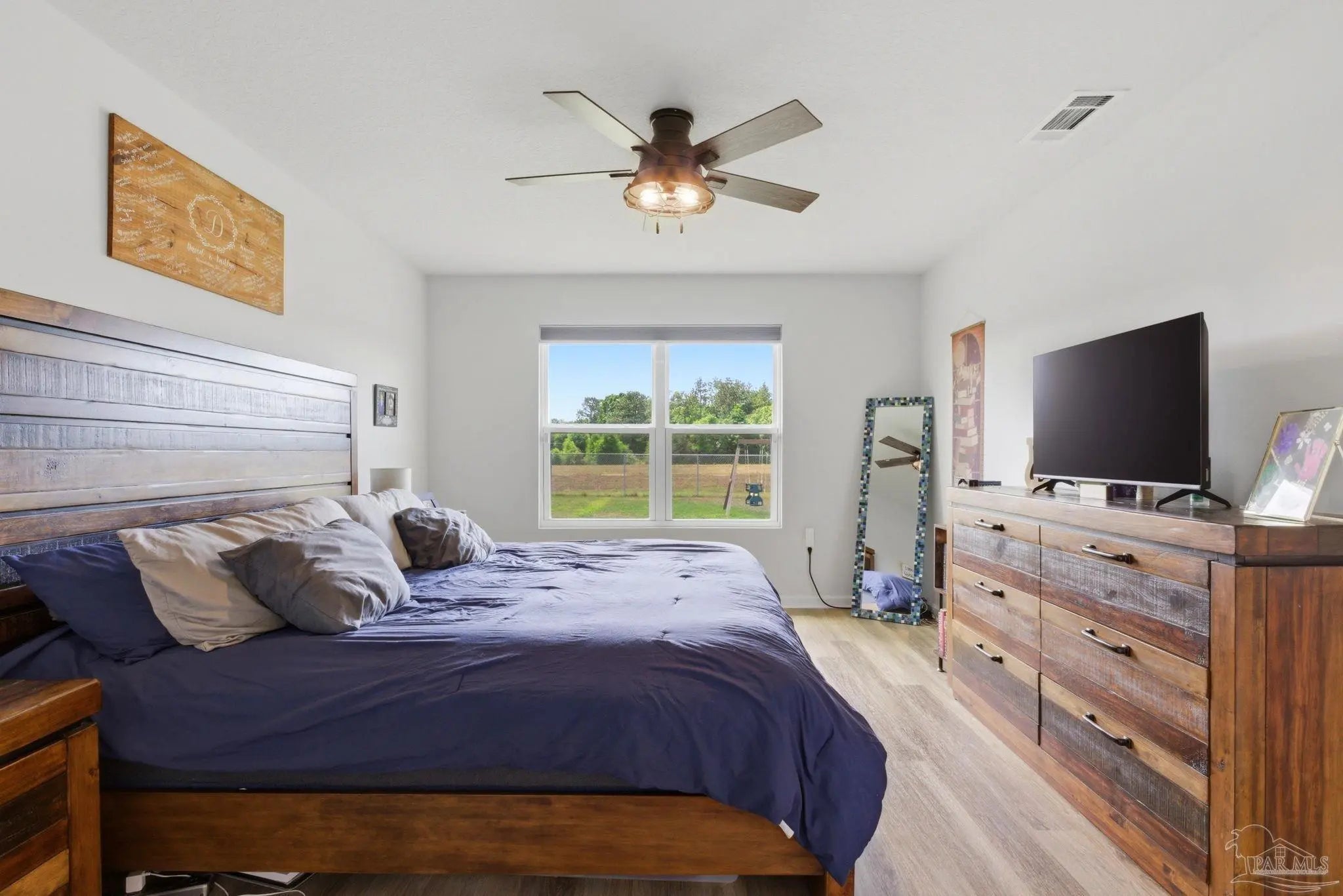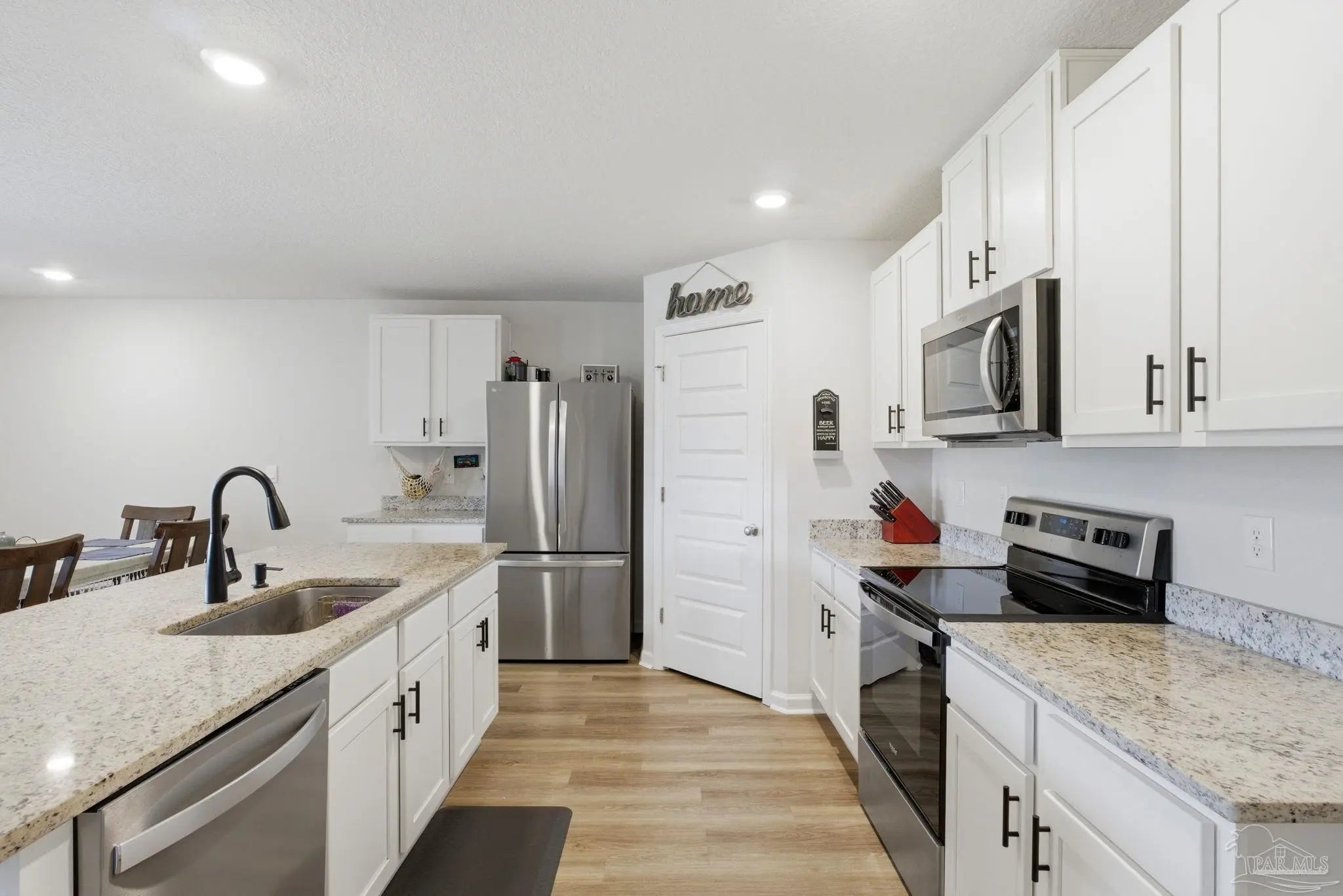 Move-in ready Cali floor plan located in Plantation Woods! Built in 2023, this 4-bedroom, 2-bath home offers 1,830 sq ft of open living space on a spacious 0.29-acre lot. The popular split floor plan features a large living area that flows seamlessly into the kitchen and dining space, complete with a center island, ample cabinetry, and modern finishes—perfect for entertaining or everyday living. The private primary suite includes a walk-in closet, double vanity, and walk-in shower, while three additional bedrooms provide flexibility for family, guests, or a home office. Enjoy outdoor living with a covered back patio overlooking the generous backyard. Additional features include a Smart Home Technology package with keyless entry and energy-efficient solar panels, offering added convenience and potential savings on utility costs. Located in the desirable Plantation Woods community with easy access to local shopping, dining, and schoo