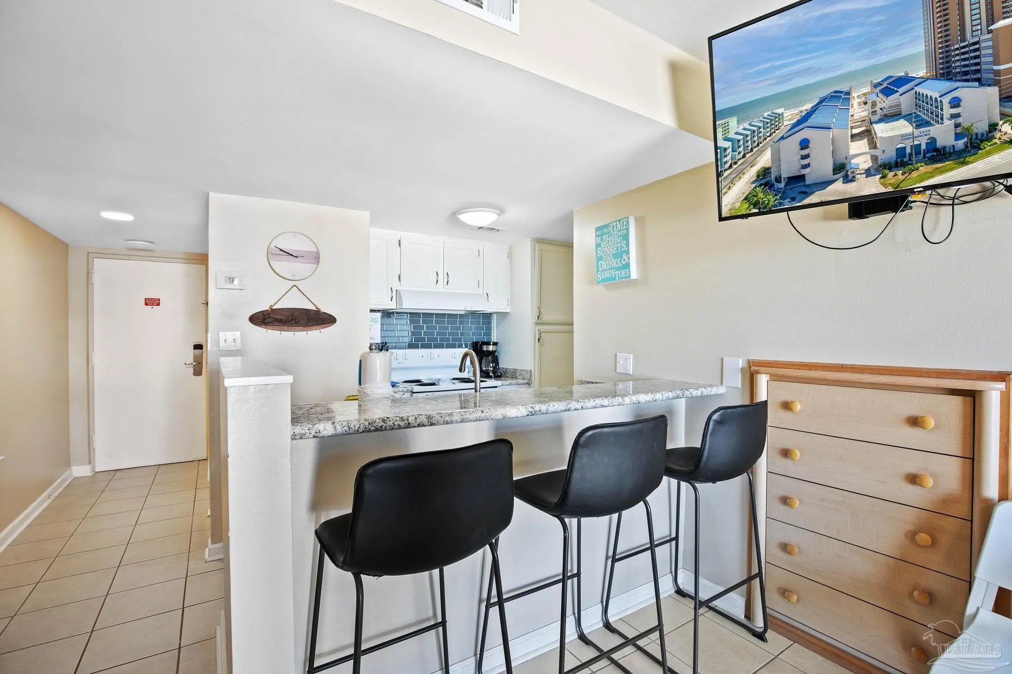 Sugar Beach Unit 304, a well-maintained 1-bedroom, 2-bathroom condo offering excellent rental income potential. Experience coastal living at its finest in this beautifully situated beachfront condo complex. Offering direct beach access and breathtaking views of the Gulf. This thoughtfully designed unit features a spacious layout, open living area, and a private balcony perfect for enjoying the coastal atmosphere. Sugar Beach offers amenities including multiple pools, direct beach access, and a relaxing resort-style setting that keeps visitors coming back year after year. Buyer to verify all information during due diligence.