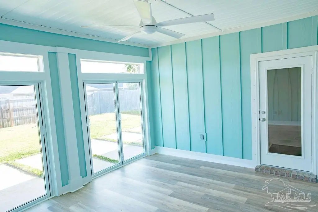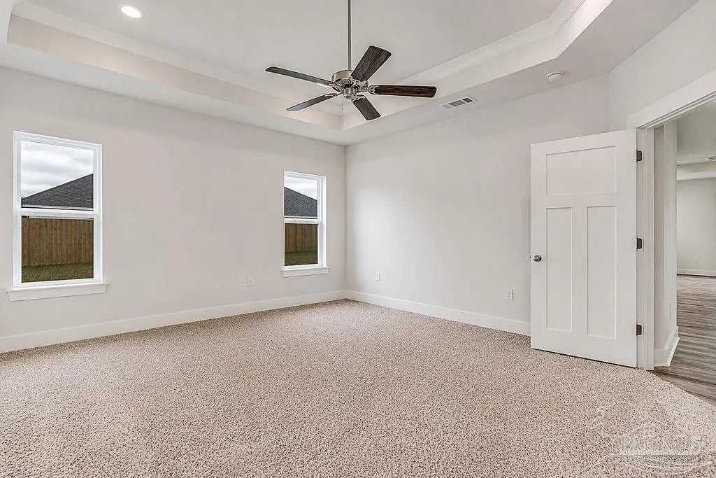 Is there a 4-bed home in Gulf Breeze that combines new construction, energy efficiency, proximity to major bases, beaches, and a bonus room? This Craftsman style home in Forest Bay Estates offers just under 2300 sqft ft, a 3-car garage, bonus room, and permanent privacy with protected conservation wetlands and a walkway directly across the street. This beautifully designed home features an open concept layout connecting a spacious family room, gourmet kitchen, and breakfast nook. The kitchen includes granite countertops, stainless steel appliances, a large island bar, and a corner pantry for added storage and functionality. A standout feature is the light-filled enclosed sunroom with brand new floors, expansive glass bi-fold doors that open to the backyard, creating seamless indoor-outdoor flow. The primary suite offers a tray ceiling, double vanity, garden tub, separate shower, and a generous walk-in closet. Additional interior features include tray ceilings, oversized closets, and a dedicated laundry room with hookups. Built for efficiency, the home includes Energy Star qualification with a geothermal heat pump, central electric HVAC, double-pane windows, and hurricane protection devices. Exterior highlights include Craftsman architecture with hardiplank siding, a covered patio, and a 3-car garage. Located across from conservation wetlands with a walking path and no future development, this property offers a rare combination of privacy, functionality, and convenience near the beaches and bases.