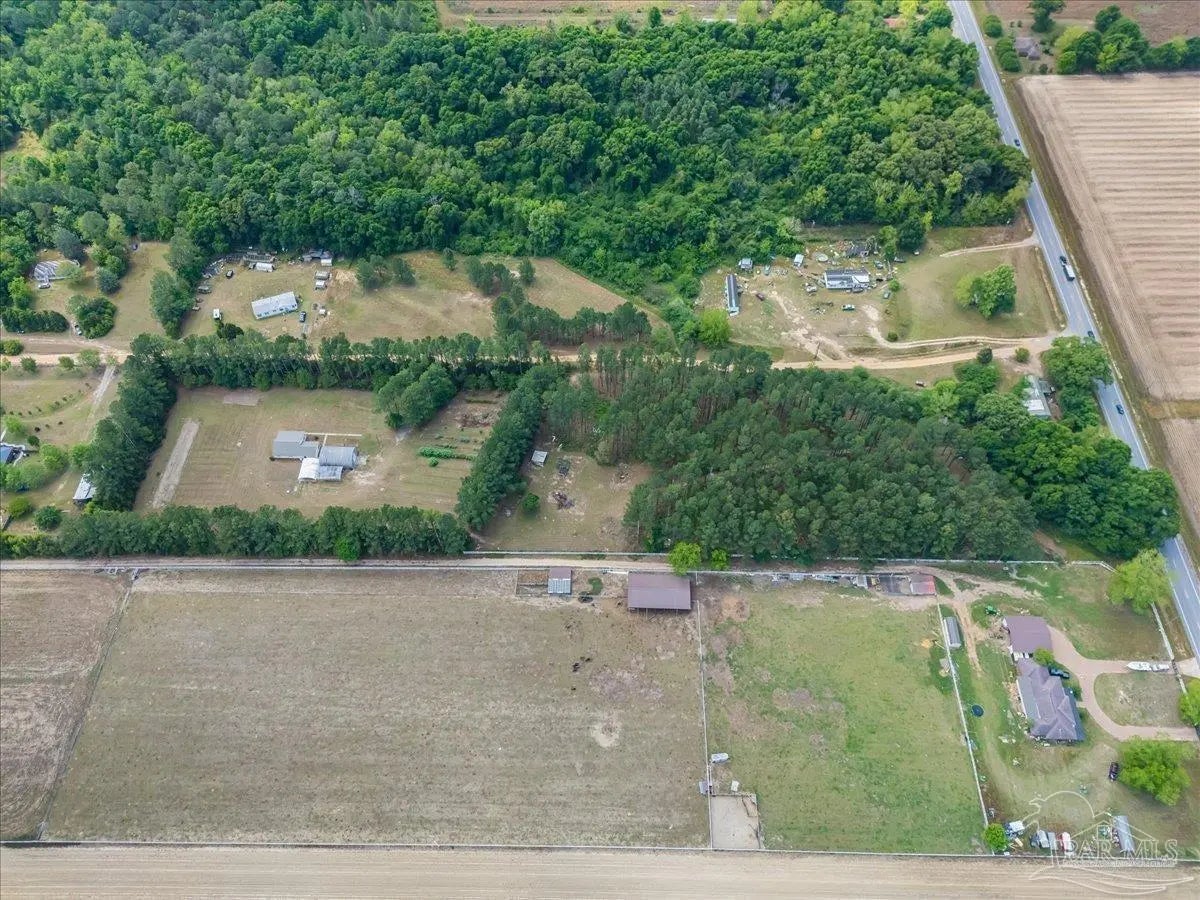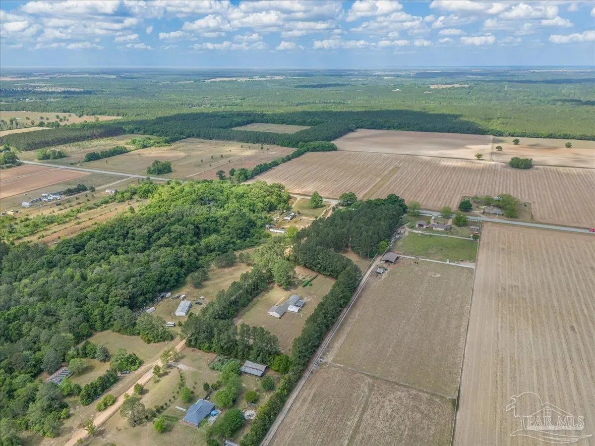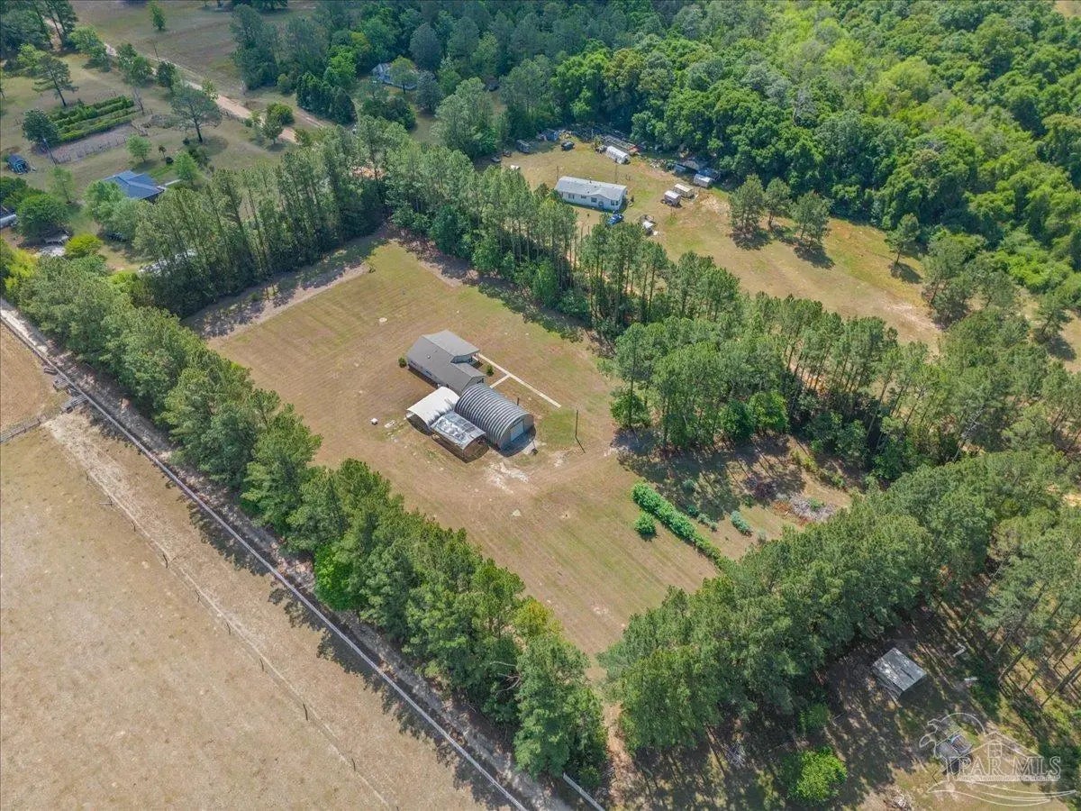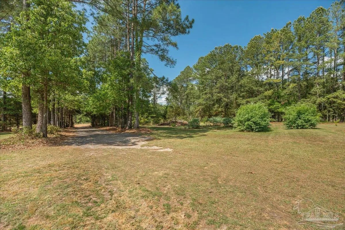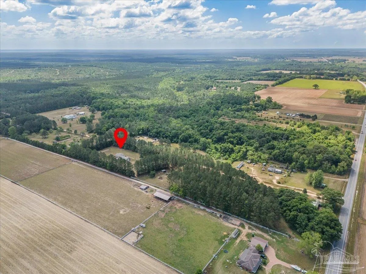 Discover the perfect blend of privacy, productivity, and rural charm with this exceptional mini farm opportunity set on nearly 9 acres. This unique property features established rows of producing blueberries, muscadine grapes, as well as mature peach and orange trees—ideal for those seeking a self-sustaining lifestyle or hobby farm.Designed with functionality in mind, the property includes a ready-to-use chicken pen and a hog pen located on the front acreage. The land is comprised of two parcels totaling 8.94 acres: the main homesite sits on 4.02 partially fenced/gated acres, while the additional 4.92-acre parcel near Hwy 87 offers partial fencing and a secondary access point, perfect for added convenience or future expansion. Surrounded by mature cedar trees, the home enjoys a private, serene setting with the potential to enhance seclusion even further. A 40' x 30' dome barn provides versatile space and includes a bonus mother-in-law suite with a full bathroom, loft storage, and durable construction designed for higher wind resistance. Additional features include two 20' x 20' dome carports—one positioned at the rear with a military-grade polyethylene cover, and another along the side of the barn for extra parking or equipment storage. The home itself is well-appointed with a metal roof and a spacious front porch—perfect for enjoying peaceful mornings. Inside, you'll find a welcoming layout with a large living room that flows into the dining area. The split-bedroom floor plan offers a front-facing guest bedroom and a generously sized primary suite at the rear, complete with a private bath. A third bedroom is located off the mudroom, providing additional space and flexibility. The open kitchen and dining area features stainless steel appliances and a gas stove, ideal for everyday living and entertaining. A mudroom and dedicated laundry room add to the home's practicality. Served by well water and thoughtfully laid out for country living, endless possibilities.