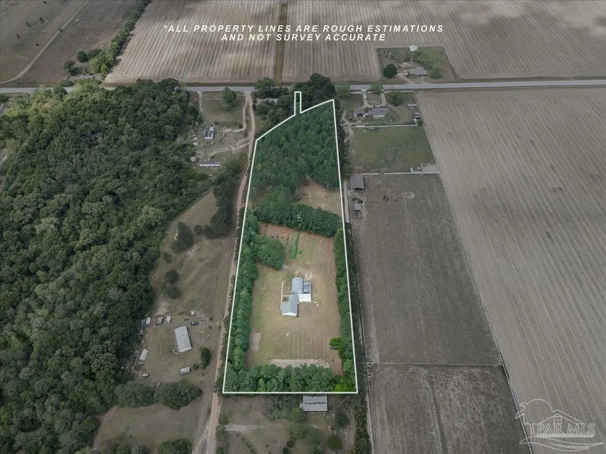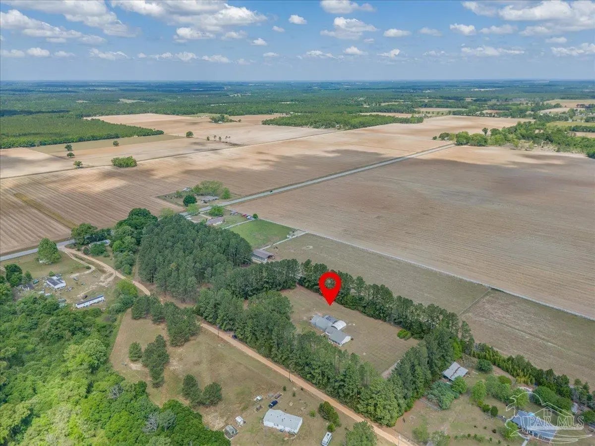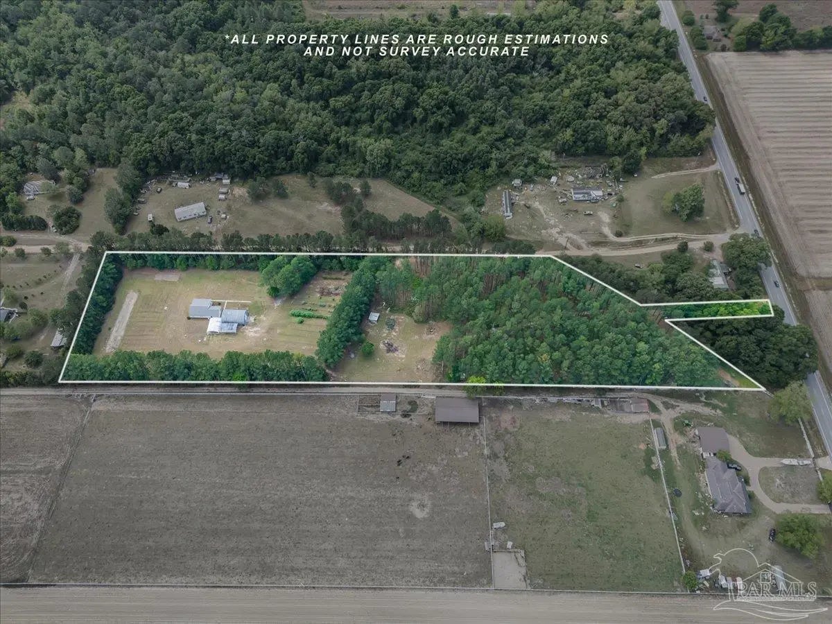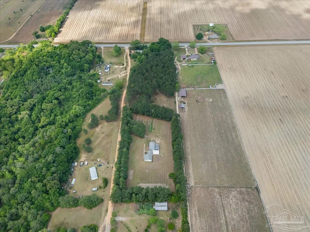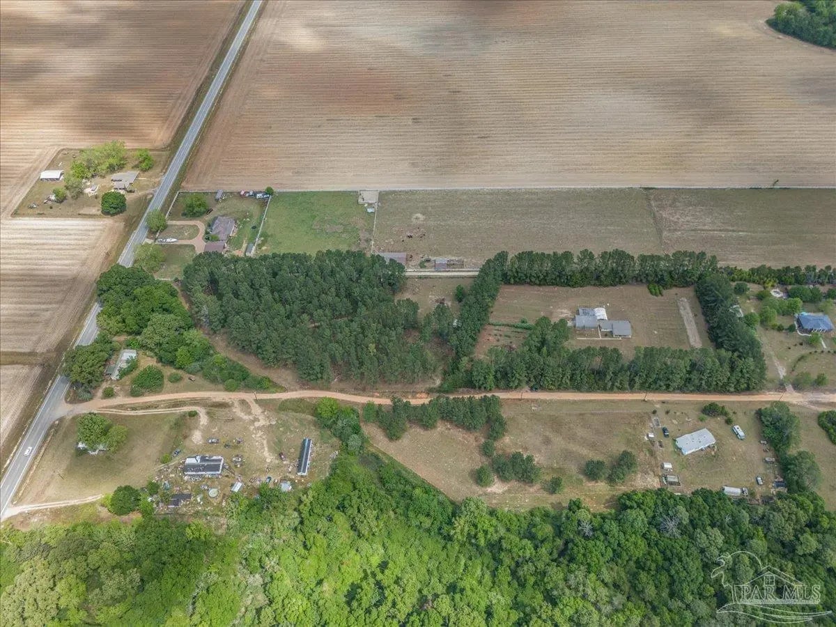 Discover the perfect blend of privacy, productivity, and rural charm with this exceptional mini farm opportunity set on nearly 9 acres. This unique property features established rows of producing blueberries, muscadine grapes, as well as mature peach and orange trees—ideal for those seeking a self-sustaining lifestyle or hobby farm.Designed with functionality in mind, the property includes a ready-to-use chicken pen and a hog pen located on the front acreage. The land is comprised of two parcels totaling 8.94 acres: the main homesite sits on 4.02 partially fenced/gated acres, while the additional 4.92-acre parcel near Hwy 87 offers partial fencing and a secondary access point, perfect for added convenience or future expansion. Surrounded by mature cedar trees, the home enjoys a private, serene setting with the potential to enhance seclusion even further. A 40' x 30' dome barn provides versatile space and includes a bonus mother-in-law suite with a full bathroom, loft storage, and durable construction designed for higher wind resistance. Additional features include two 20' x 20' dome carports—one positioned at the rear with a military-grade polyethylene cover, and another along the side of the barn for extra parking or equipment storage. The home itself is well-appointed with a metal roof and a spacious front porch—perfect for enjoying peaceful mornings. Inside, you'll find a welcoming layout with a large living room that flows into the dining area. The split-bedroom floor plan offers a front-facing guest bedroom and a generously sized primary suite at the rear, complete with a private bath. A third bedroom is located off the mudroom, providing additional space and flexibility. The open kitchen and dining area features stainless steel appliances and a gas stove, ideal for everyday living and entertaining. A mudroom and dedicated laundry room add to the home's practicality. Served by well water and thoughtfully laid out for country living, endless possibilities.