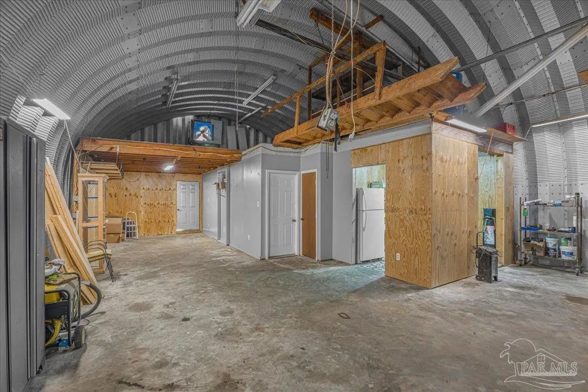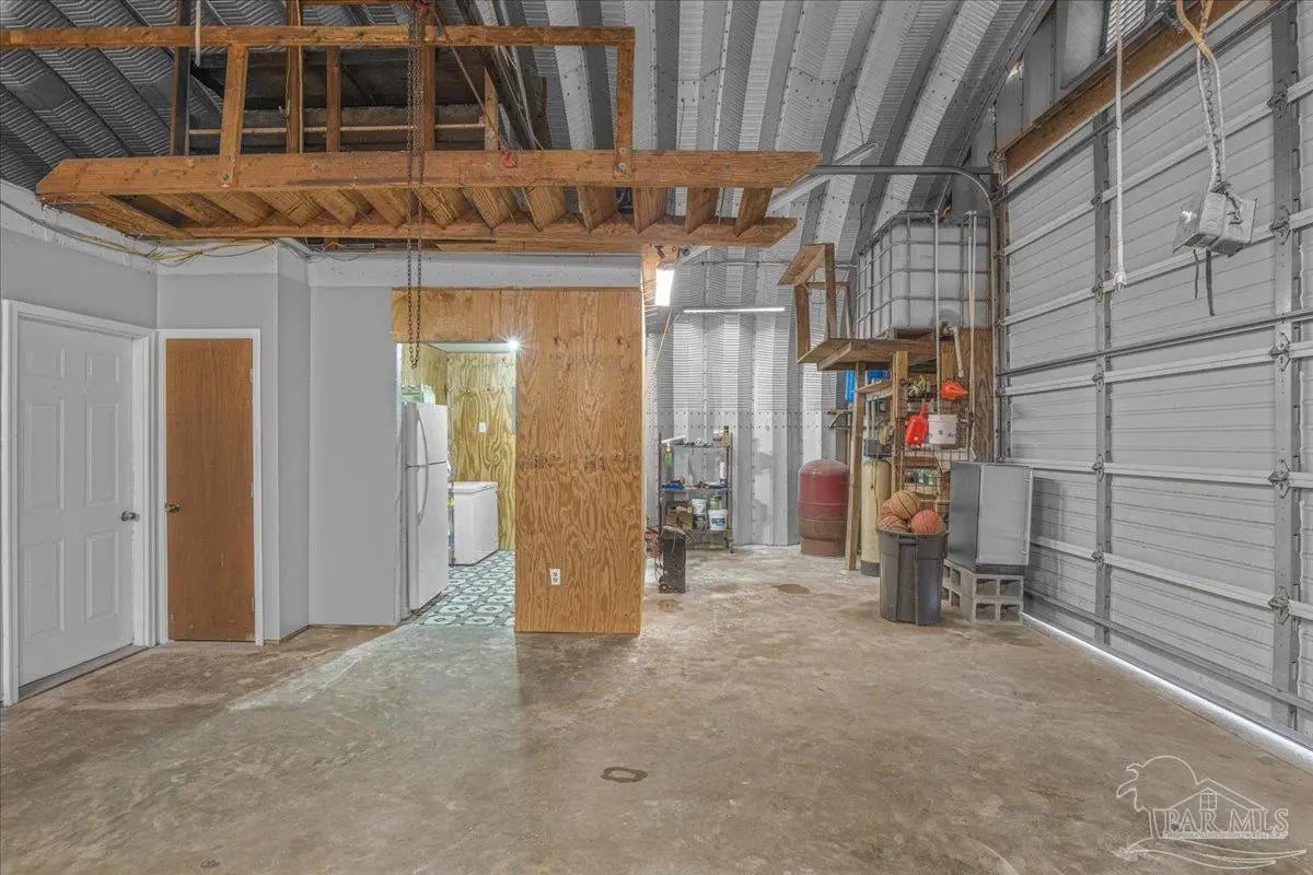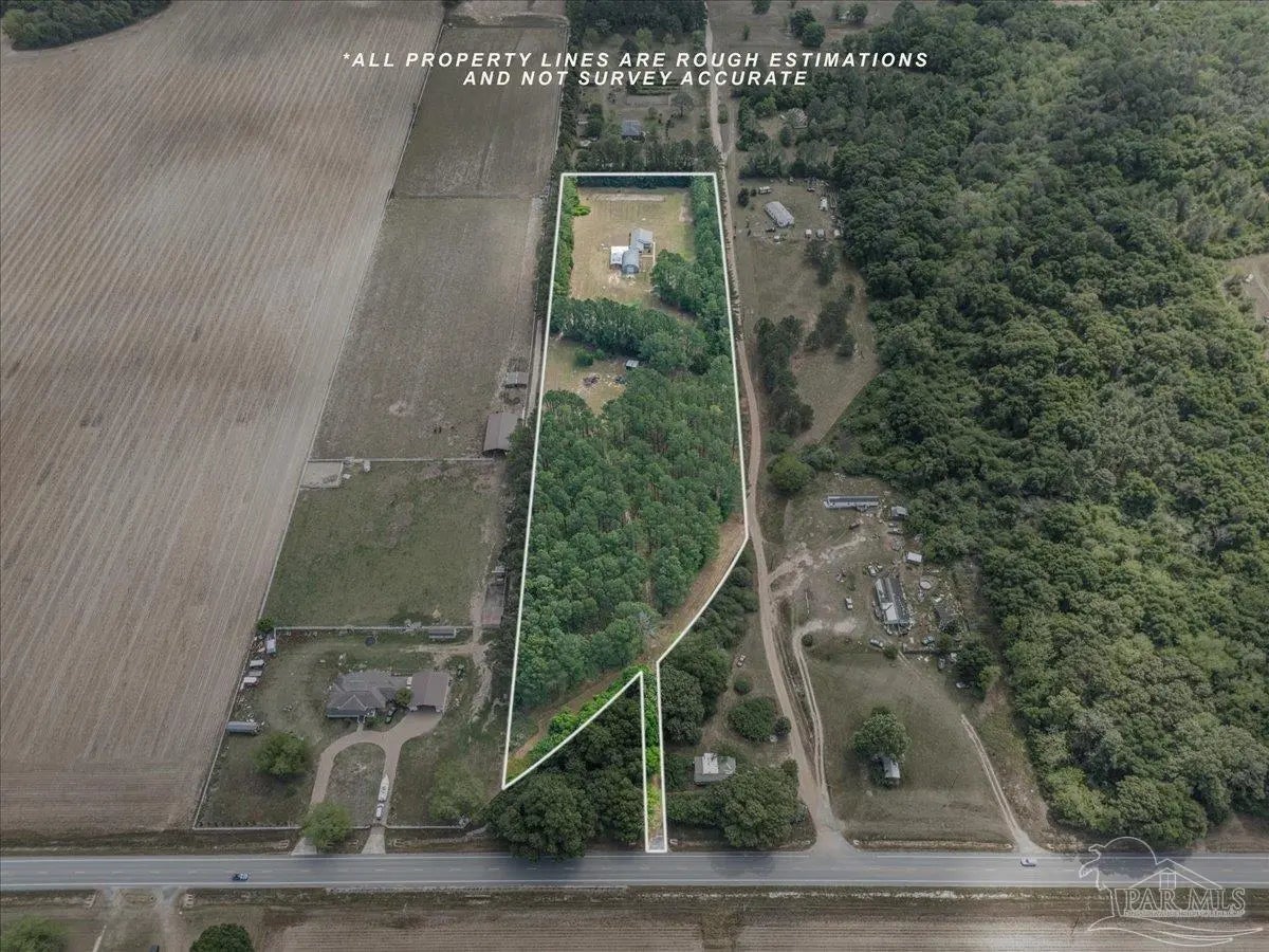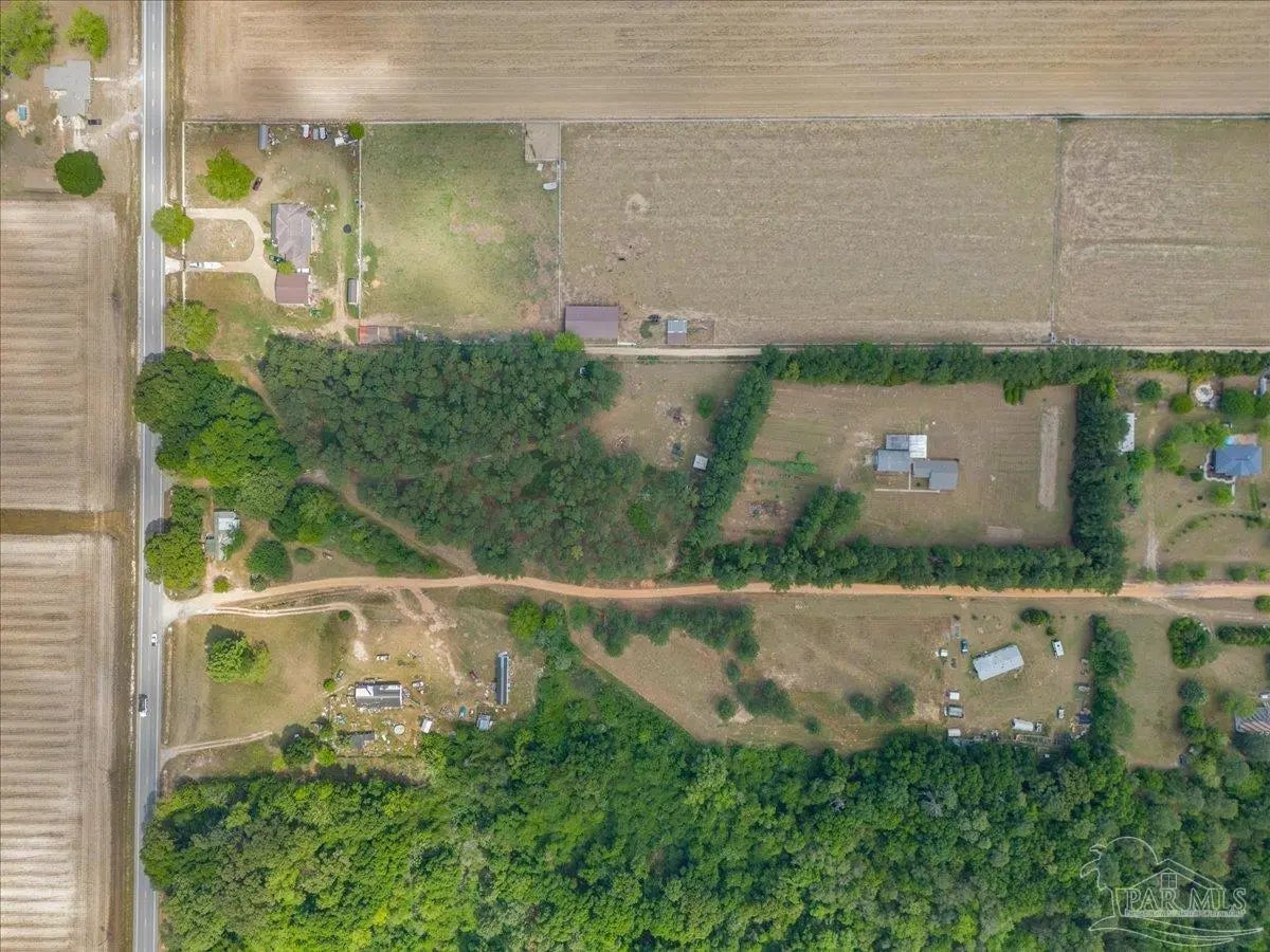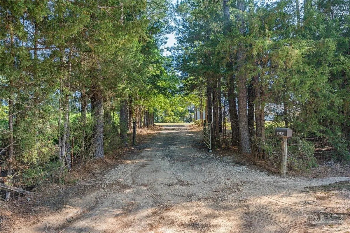 Discover the perfect blend of privacy, productivity, and rural charm with this exceptional mini farm opportunity set on nearly 9 acres. This unique property features established rows of producing blueberries, muscadine grapes, as well as mature peach and orange trees—ideal for those seeking a self-sustaining lifestyle or hobby farm.Designed with functionality in mind, the property includes a ready-to-use chicken pen and a hog pen located on the front acreage. The land is comprised of two parcels totaling 8.94 acres: the main homesite sits on 4.02 partially fenced/gated acres, while the additional 4.92-acre parcel near Hwy 87 offers partial fencing and a secondary access point, perfect for added convenience or future expansion. Surrounded by mature cedar trees, the home enjoys a private, serene setting with the potential to enhance seclusion even further. A 40' x 30' dome barn provides versatile space and includes a bonus mother-in-law suite with a full bathroom, loft storage, and durable construction designed for higher wind resistance. Additional features include two 20' x 20' dome carports—one positioned at the rear with a military-grade polyethylene cover, and another along the side of the barn for extra parking or equipment storage. The home itself is well-appointed with a metal roof and a spacious front porch—perfect for enjoying peaceful mornings. Inside, you'll find a welcoming layout with a large living room that flows into the dining area. The split-bedroom floor plan offers a front-facing guest bedroom and a generously sized primary suite at the rear, complete with a private bath. A third bedroom is located off the mudroom, providing additional space and flexibility. The open kitchen and dining area features stainless steel appliances and a gas stove, ideal for everyday living and entertaining. A mudroom and dedicated laundry room add to the home's practicality. Served by well water and thoughtfully laid out for country living, endless possibilities.